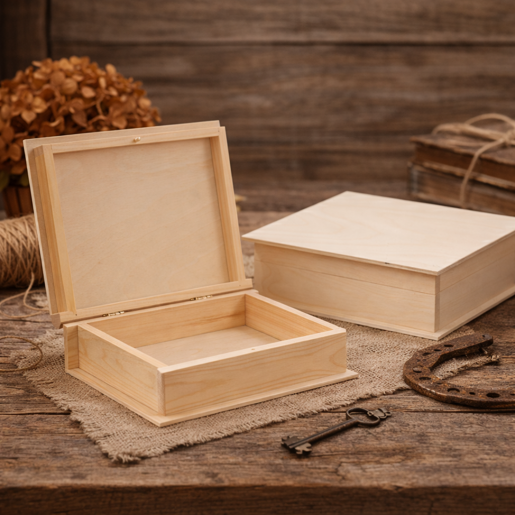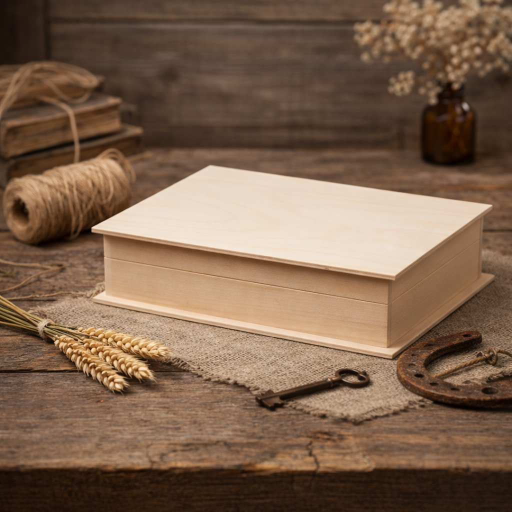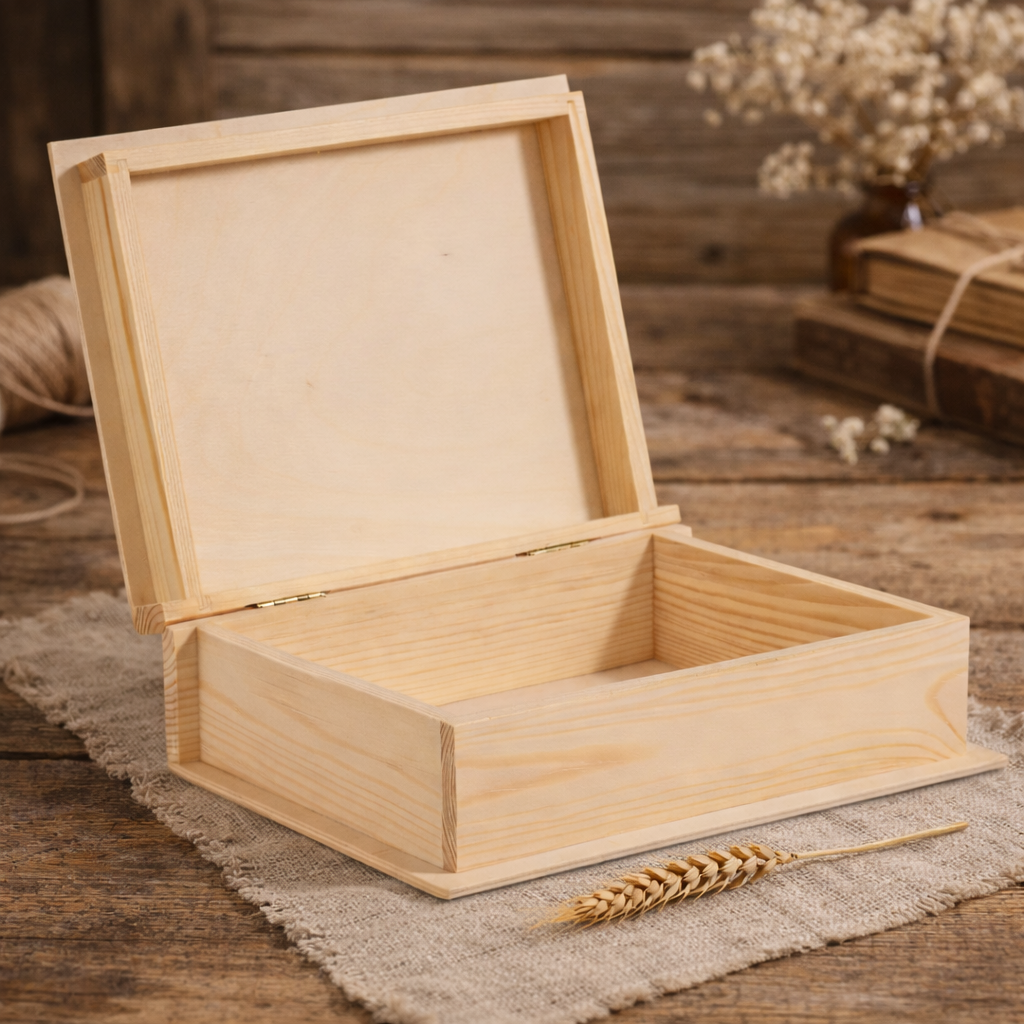 Drewniane pudełko na pamiątki 21 × 17 × 4,5 cm – kasetka z drewna lipowego