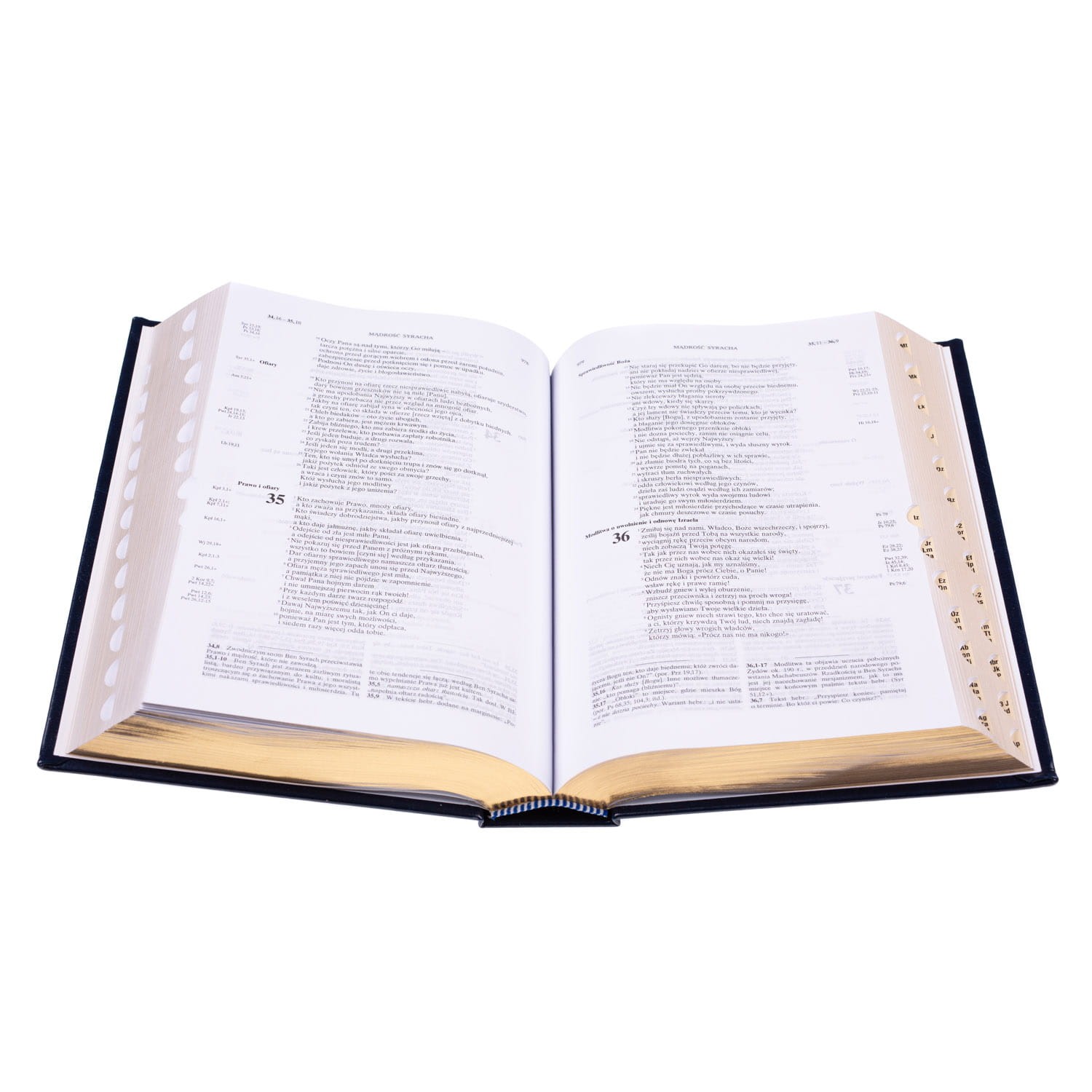 Polecamy polskie wydanie Biblii Jerozolimskiej, prawdopodobnie najpopularniejszej edycji Pisma Świętego na świecie, w twardej oprawie, ze złoconymi brzegami oraz dodatkowo wzbogaconą o skorowidz tzn. każda księga Pisma Świętego ma oznaczone nacięcia (paginatory), dzięki którym bardzo szybko można znaleźć szukany tekst. Pismo Święte Starego i Nowego Testamentu w przekładzie z języków oryginalnych - Biblia Tysiąclecia, wydanie V; Wstępy, przypisy, komentarze i marginalia - La Bible de Jérusalem, Paris 1996.