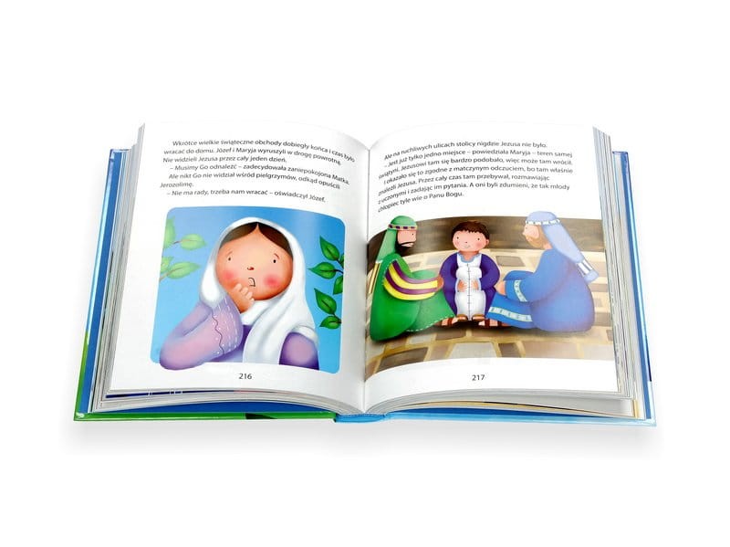 - zajmujące opowiadania ze Starego i Nowego Testamentu nadają się doskonale do czytania na głos, a barwne, ciekawe obrazki, wypełniające niemal całą stronę, trafnie ilustrują parafrazowany tekst biblijny