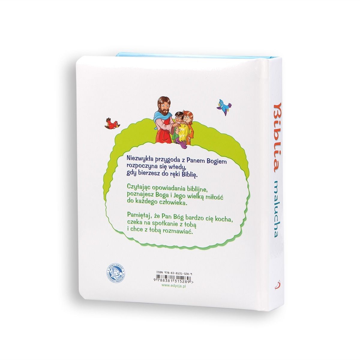 Niezwykła przygoda z Panem Bogiem rozpoczyna się wtedy, gdy dziecko bierze do ręki Biblię. Słuchając biblijnych opowiadań, poznaje ono Boga i Jego wielką miłość. Jezus w czasie ziemskiego życia chętnie spotykał się z dziećmi. Mówił, że do takich, jak one należy królestwo Boże. Także dzisiaj Jezus czeka na swoich najmłodszych uczniów. Wspaniałą okazją do spotkania z Nim będzie ta kolorowa Biblia napisana specjalnie dla maluchów.