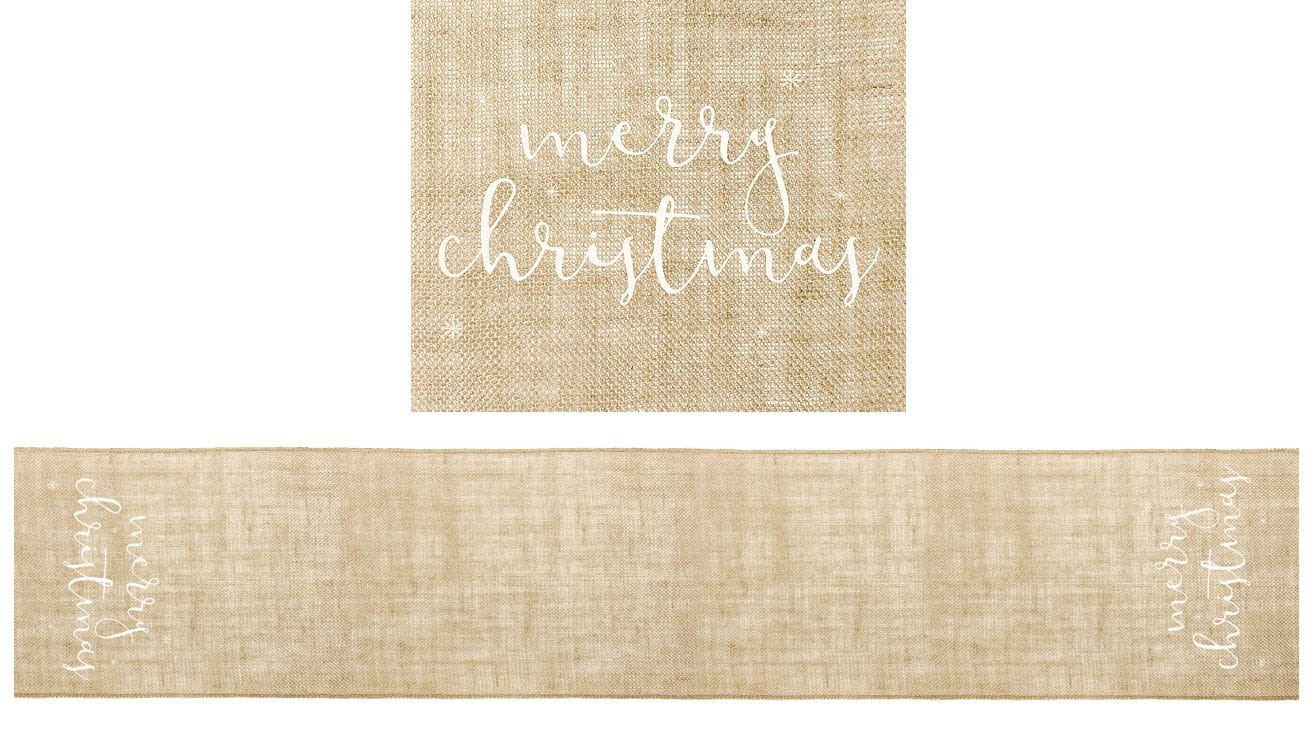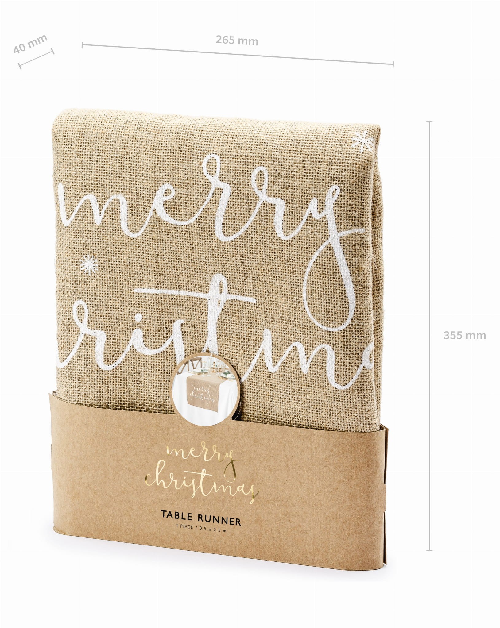 Idealnie nadaje się do dekoracji stołu podczas Wigilii i Świąt Bożego Narodzenia. Bieżnik jutowy z nadrukiem Merry Christmas.