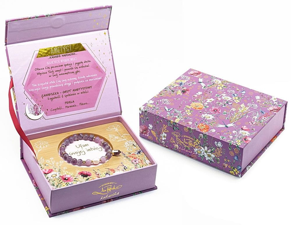 Bransoletka - AMETYST minerał w pamiątkowym pudełku