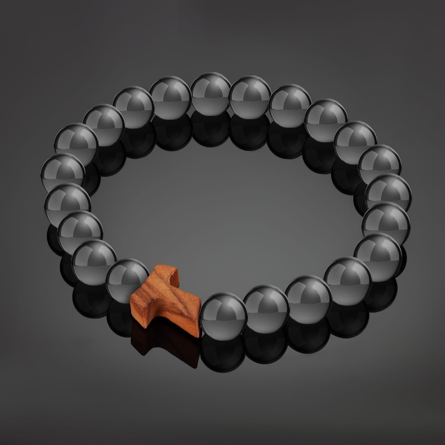 Bransoletka - Hematyt + Drzewo Orzech Włoski + Drzewo Oliwne