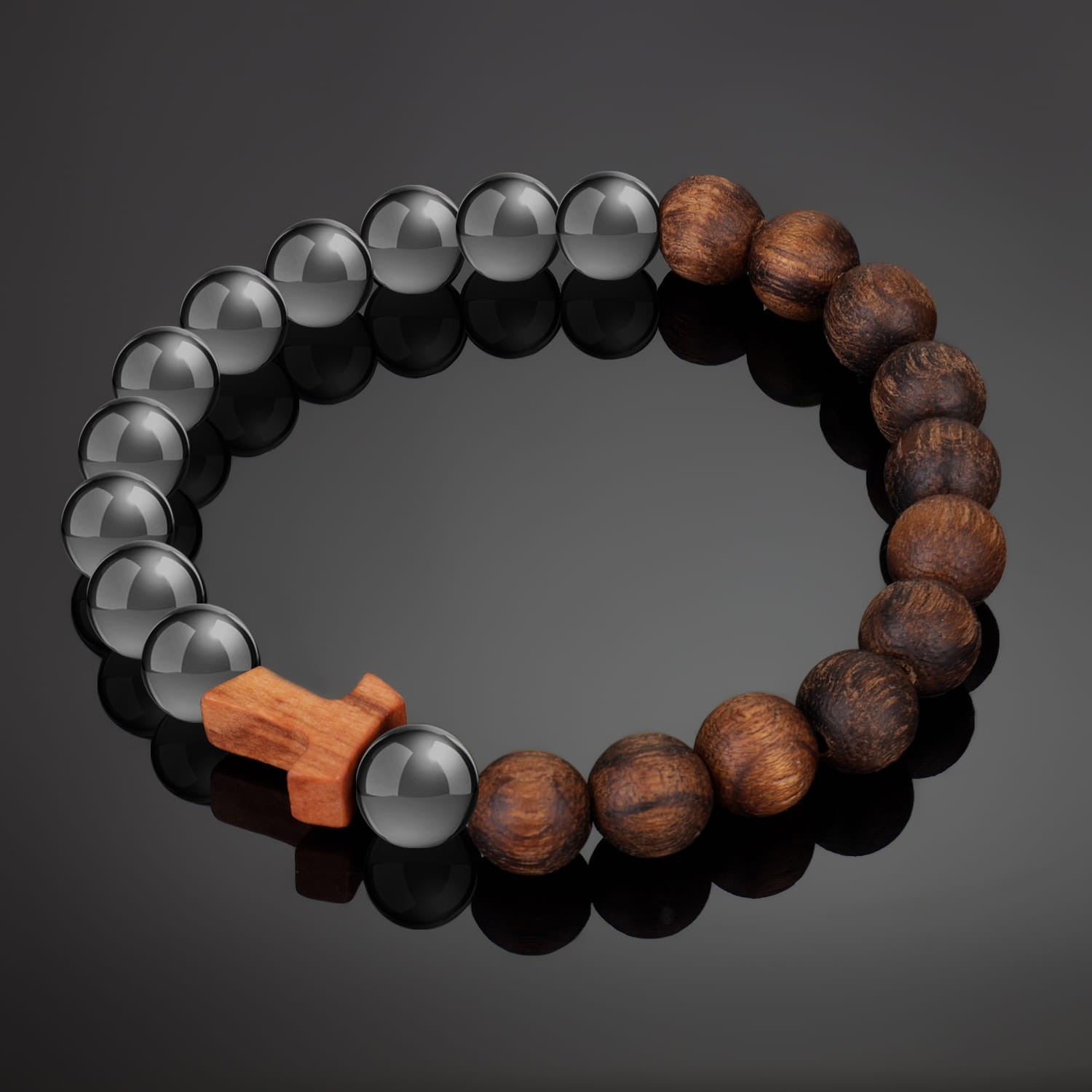 Bransoletka - Hematyt + Drzewo Orzech Włoski + Drzewo Oliwne