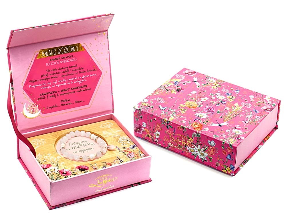 Bransoletka - KWARC RÓŻOWY minerał w pamiątkowym pudełku