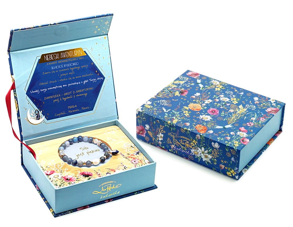 Bransoletka - Niebieski Awenturyn minerał w pamiątkowym pudełku
