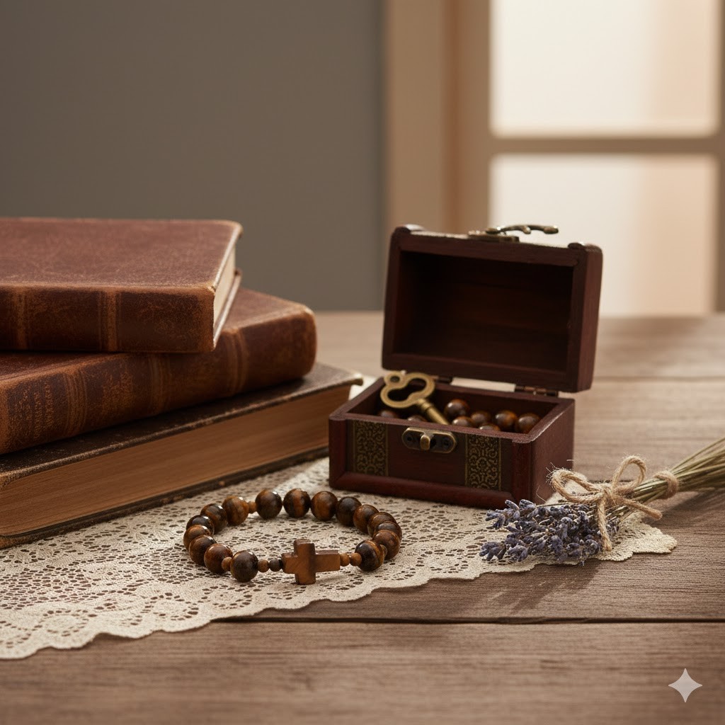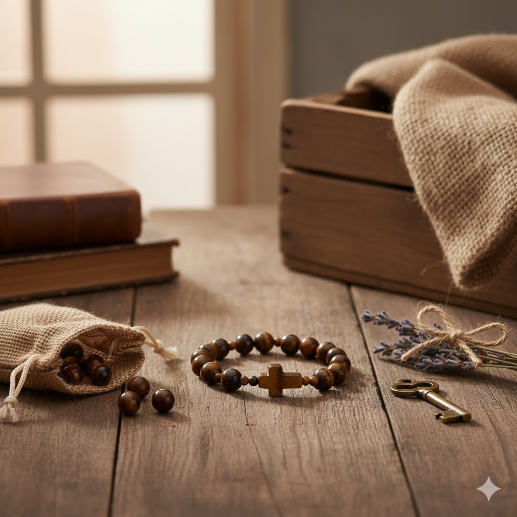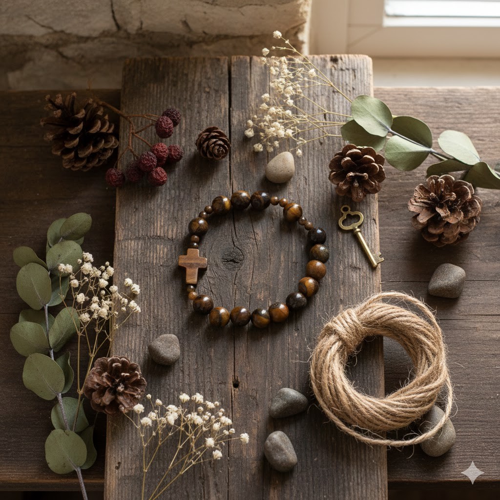 Bransoletka dziesiątek różańca z Tygrysiego Oka to subtelny, a zarazem wyrazisty znak wiary, który można nosić każdego dnia. Naturalne kamienie o charakterystycznych złoto-brązowych refleksach tworzą harmonijną całość z prostym, drewnianym krzyżykiem — symbolem zaufania, modlitwy i duchowej obecności Boga w codzienności.