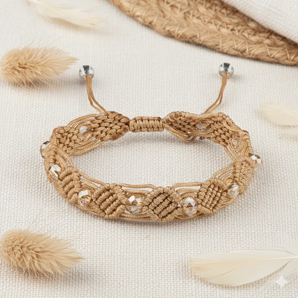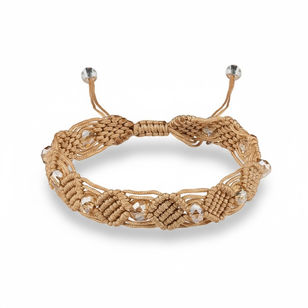 Pleciona konstrukcja nadaje bransoletce charakterystyczny wygląd oraz zapewnia trwałość i komfort użytkowania. Jasnobrązowa kolorystyka sprawia, że model ten ma uniwersalny i naturalny charakter, odpowiedni zarówno dla kobiet, jak i mężczyzn.
