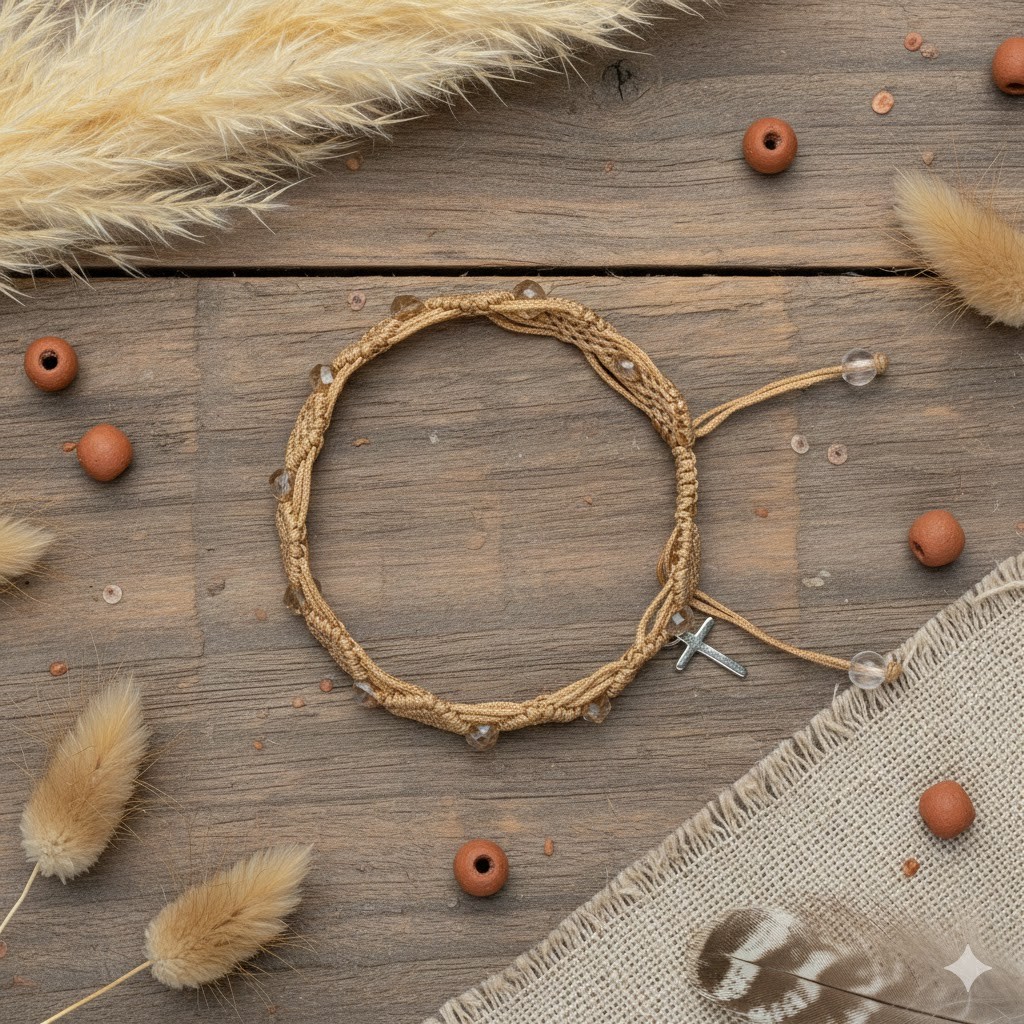 Bransoletka dziesiątek różańca jasny brąz – sznurkowa regulowana