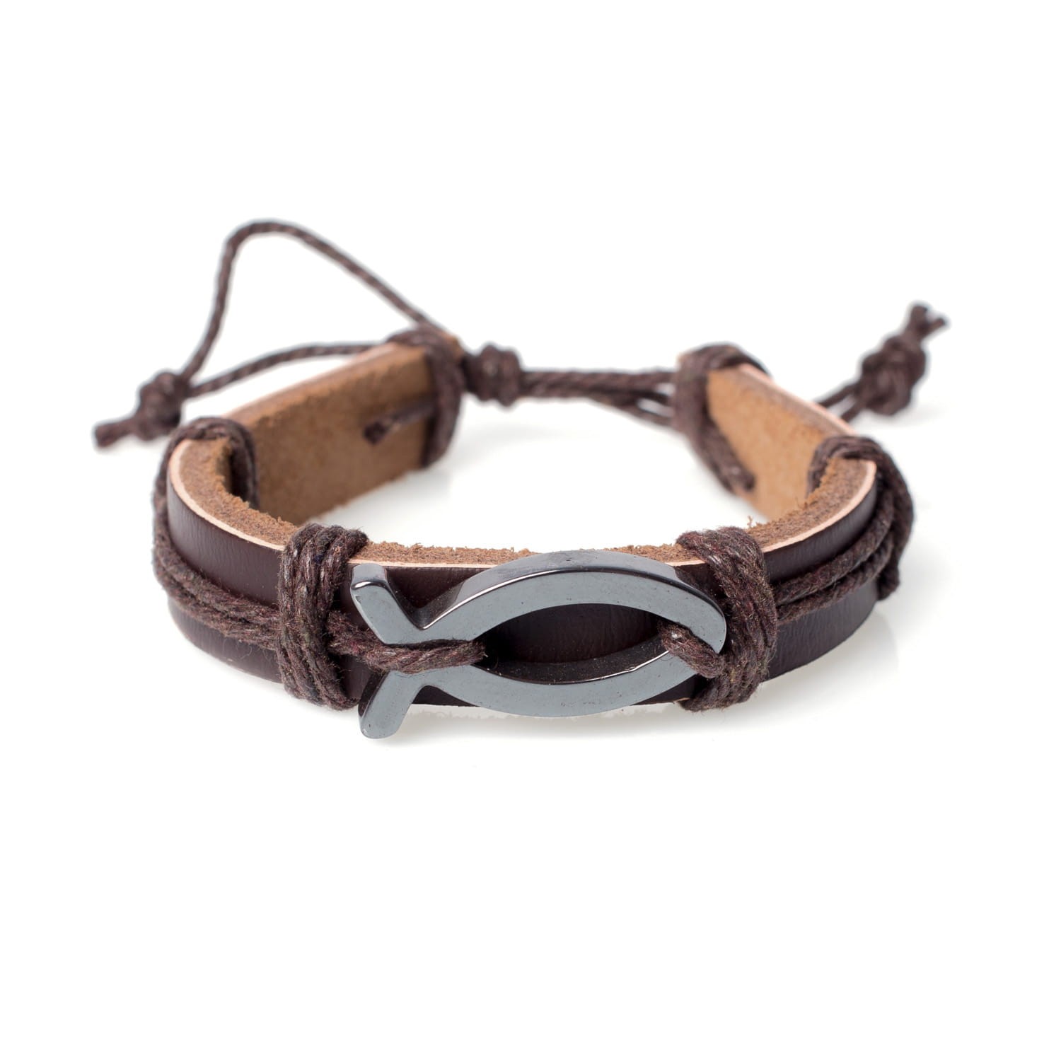 Bransoletka skórzana - rybka chrześcijańska
