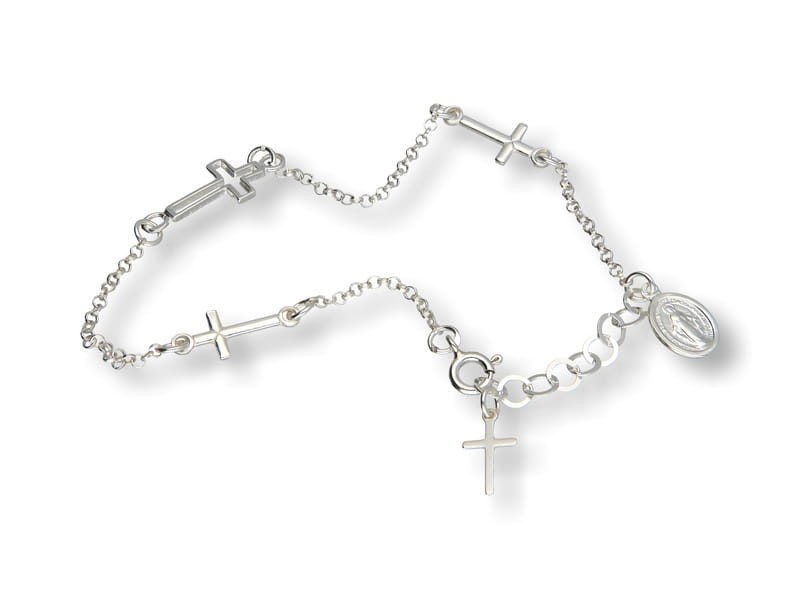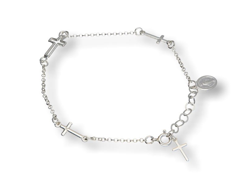 Bransoletka srebrna z łącznikami Krzyży Świętych i wizerunkiem "Cudowny Medalik"