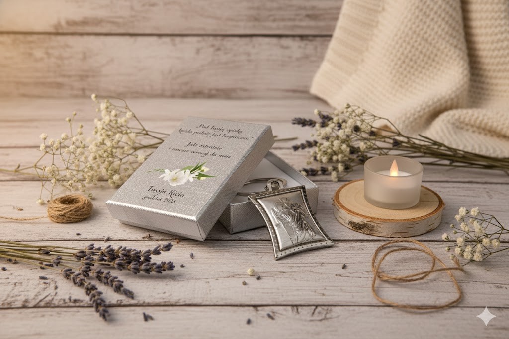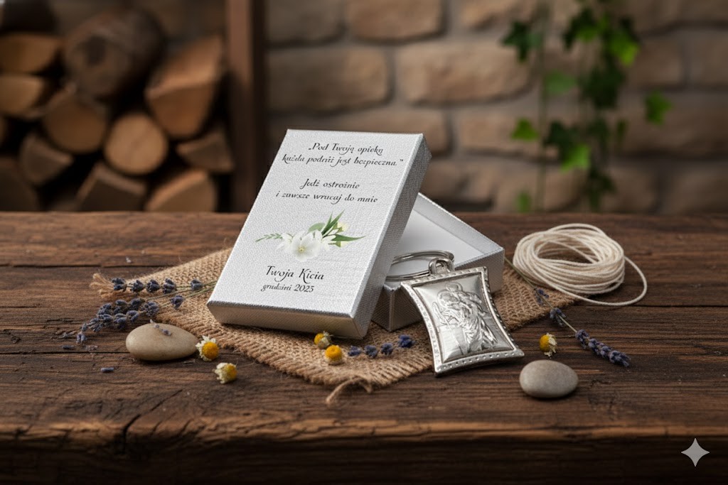 Grawer na breloku – imię, data lub krótka sentencja (np. „Z Bogiem w każdej podróży”)