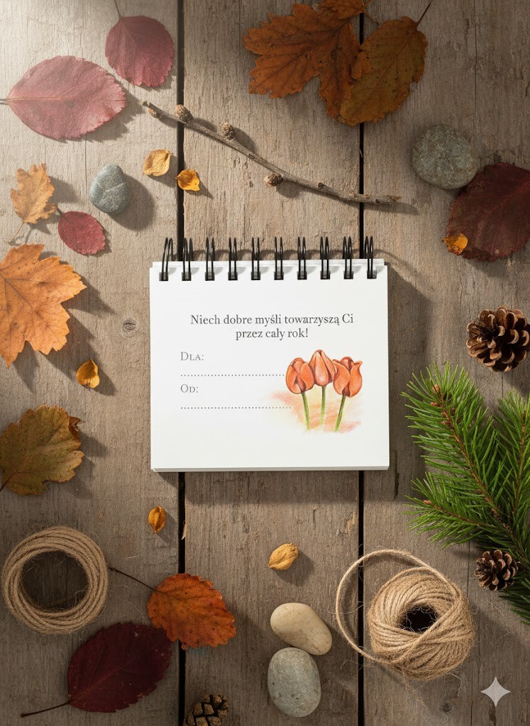 We wnętrzu znajduje się również specjalna strona na osobistą dedykację. Dzięki temu codziennik staje się pięknym i osobistym upominkiem — na urodziny, święta, imieniny, Dzień Matki, dla nauczyciela, przyjaciela czy współpracownika.