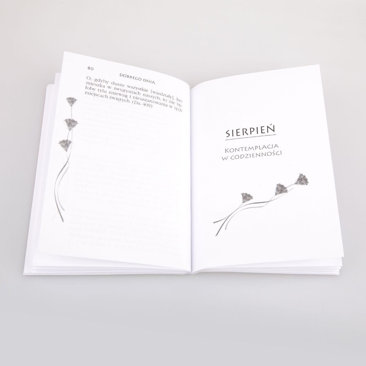Publikacja to część serii wydawniczej “Dobrego dnia”, w której znajdziesz myśli wybranych świętych, m.in. św. Ojca Pio, św. Jana Pawła II czy św. Maksymiliana Marii Kolbego na każdy dzień roku.