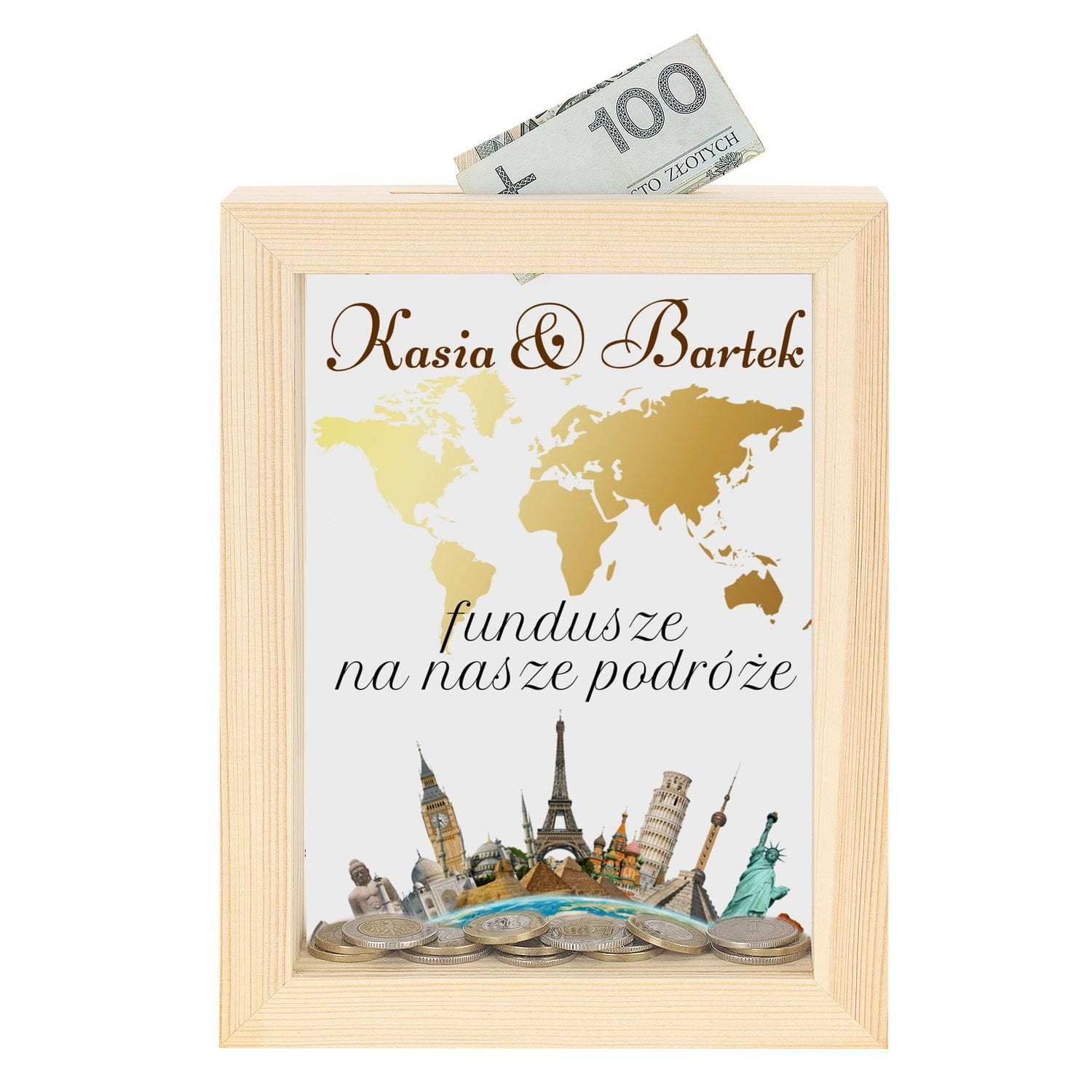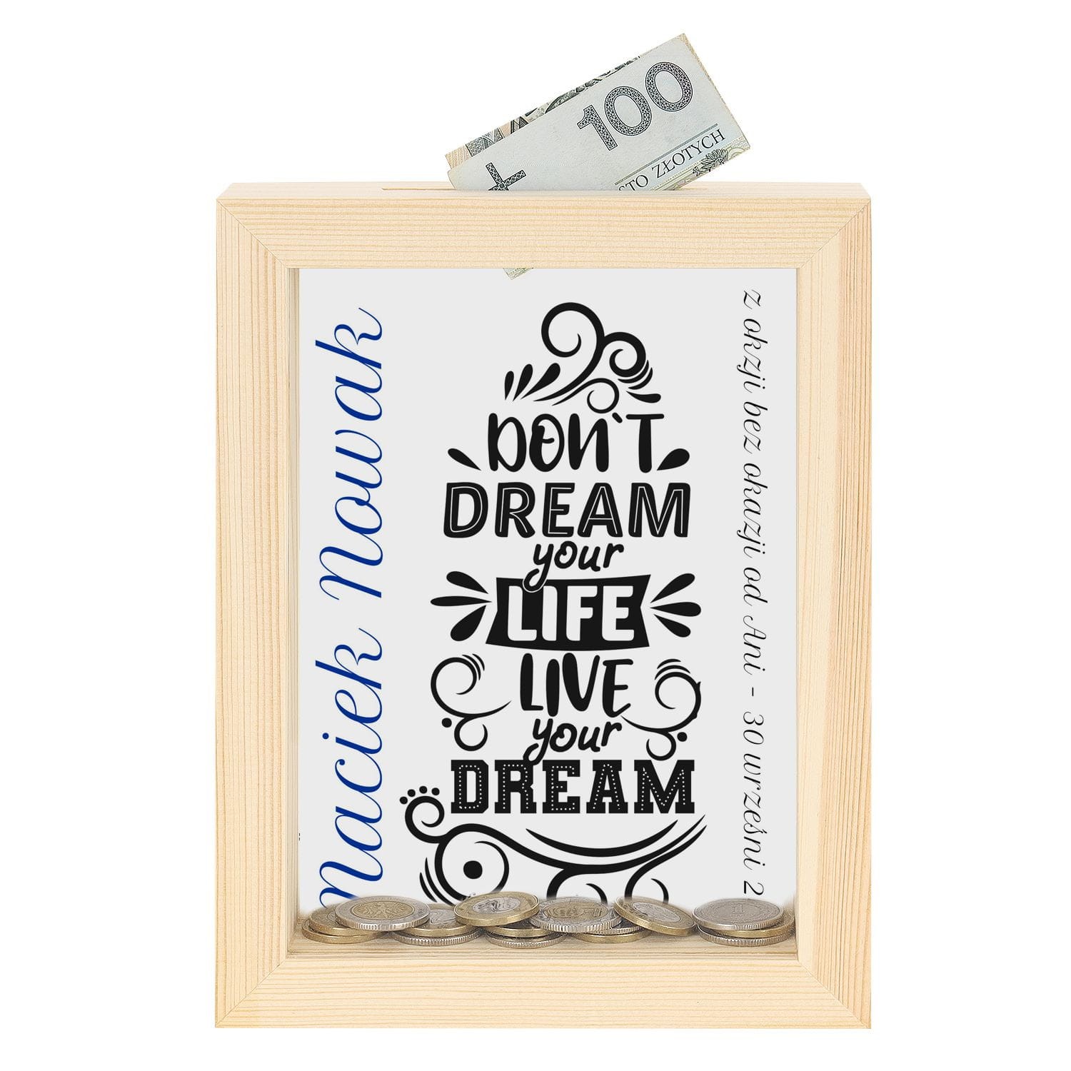 Drewniana skarbonka NA MARZENIA - Pamiątka & Upominek