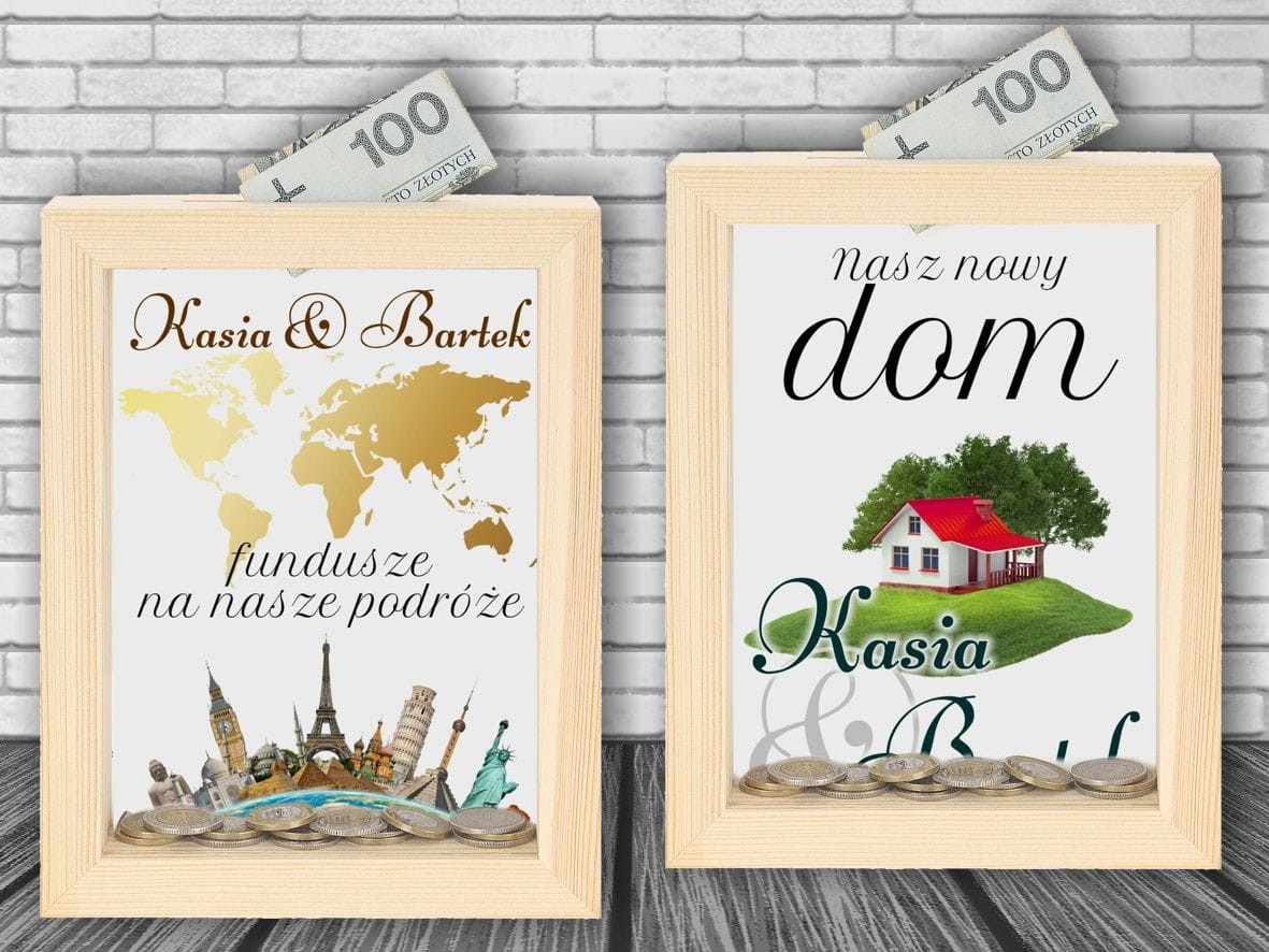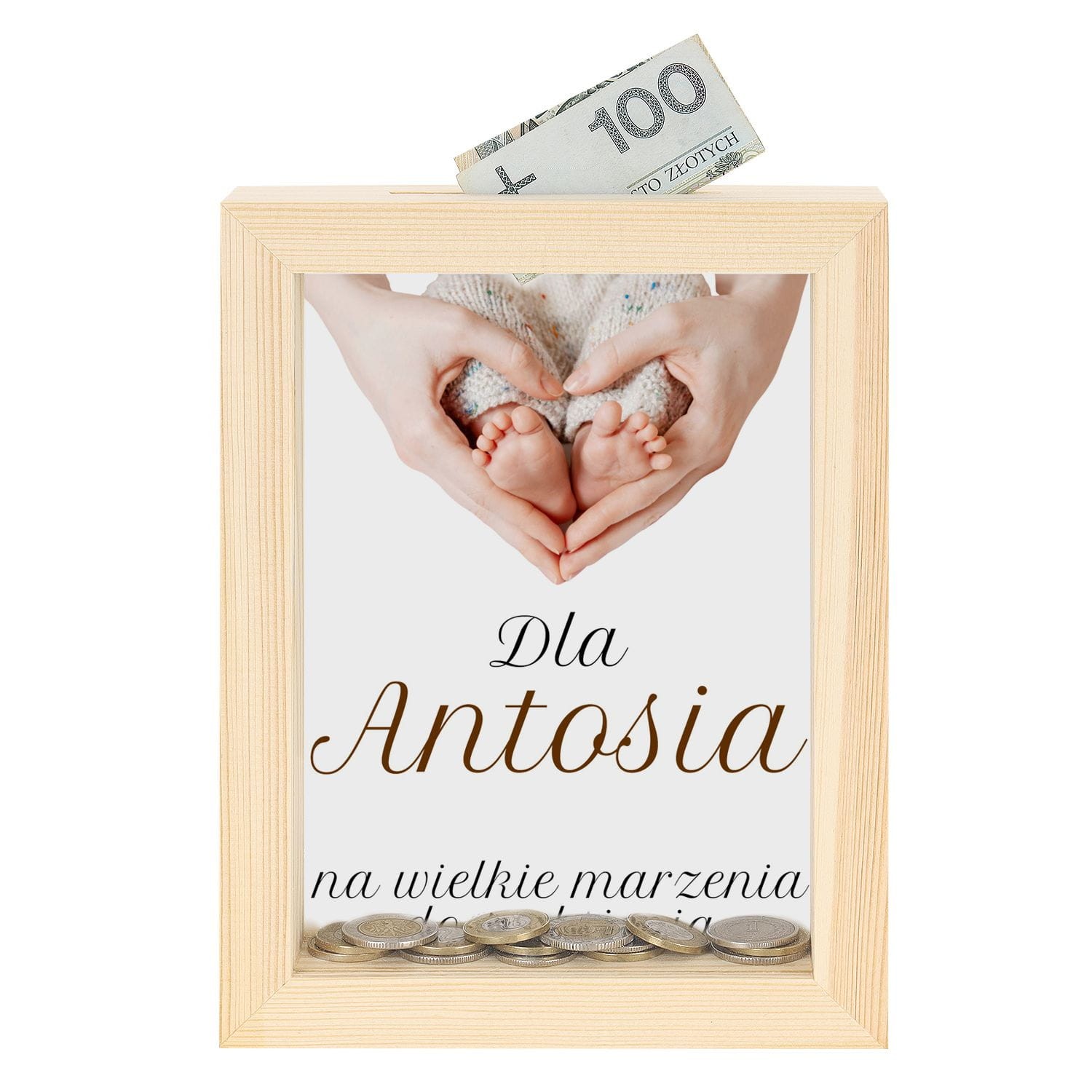 Drewniana skarbonka z przezroczystą szybką i Twoim projektem według wyboru będzie świetnym prezentem na każdą okazję, a dodanie dedykacji dla obdarowanego sprawi, że prezent nabierze indywidualnego i nietuzinkowego charakteru. Skarbonka z określoną ilością gotówki to prezent praktyczny, a jednocześnie pamiątkowy. Koperta szybko znika. Rodzice kupują dziecku prezent w naszym imieniu, jednak maluch prawdopodobnie nigdy nie dowie się, od kogo w rzeczywistości go otrzymał i z jakiej okazji. Skarbonka zaś może służyć mu jako zabawka, a później jako pamiątka ważnej uroczystości, szczególnie jeśli umieścimy na niej grawer. Pamiątkę możemy spersonalizować dowolną treścią, która sprawi, że prezent będzie jeszcze bardziej indywidualny.