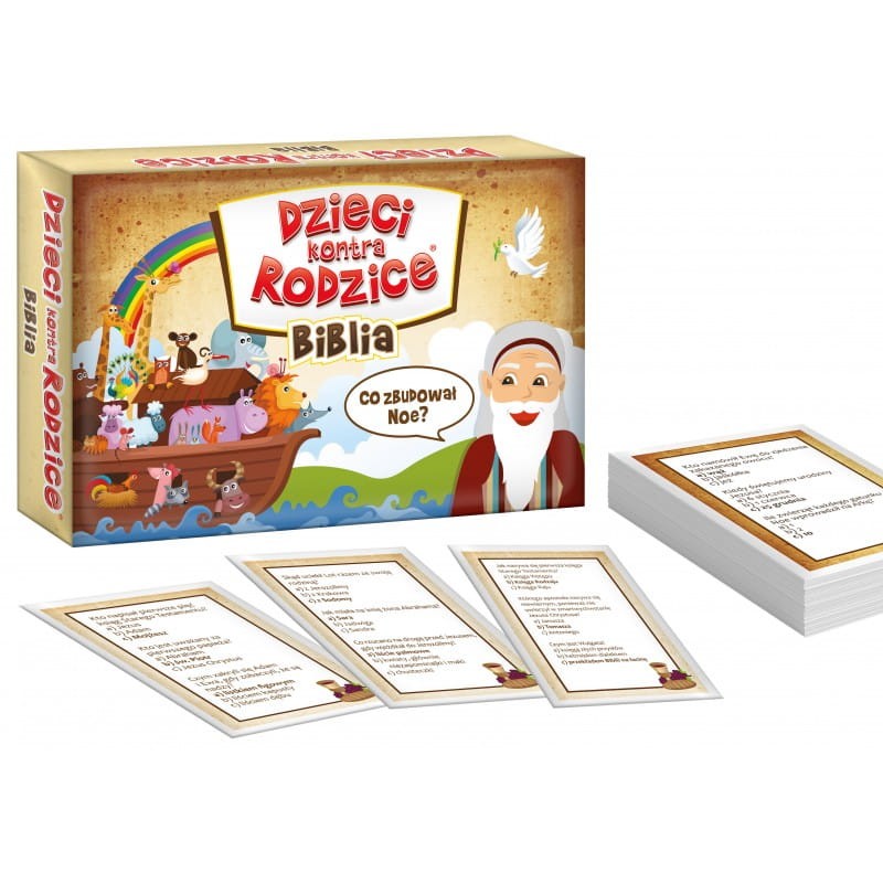 Gdzie mieszkali Adam i Ewa? Kto zbudował arkę? Dynamiczna gra, w której dzieci rywalizują z rodzicami. Ciekawe pytania przeniosą Was w niezwykły świat Biblii. W grze znajdziecie pytania przygotowane specjalnie dla dzieci i dla rodziców.