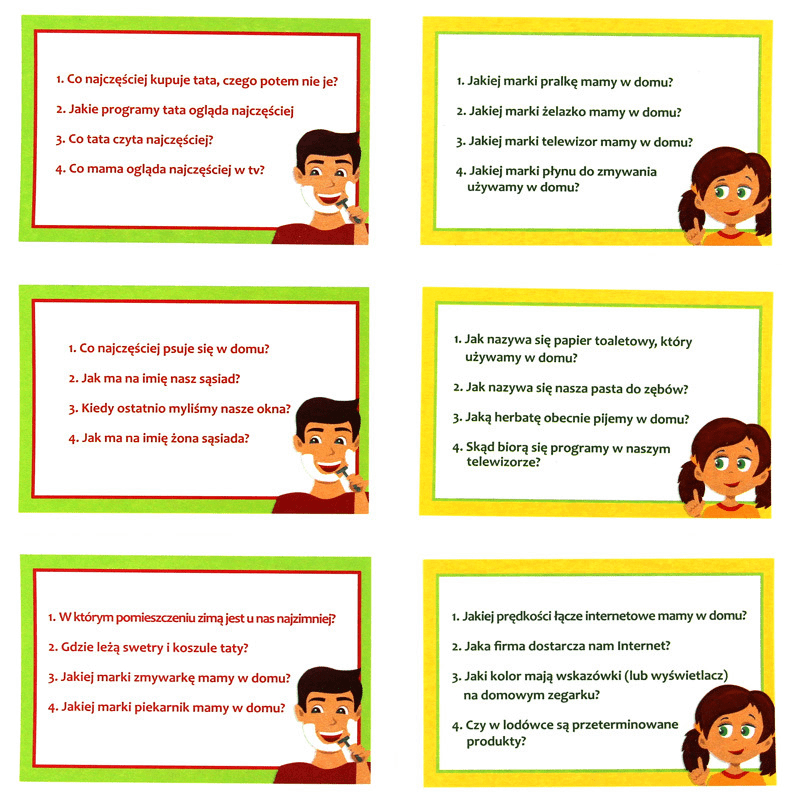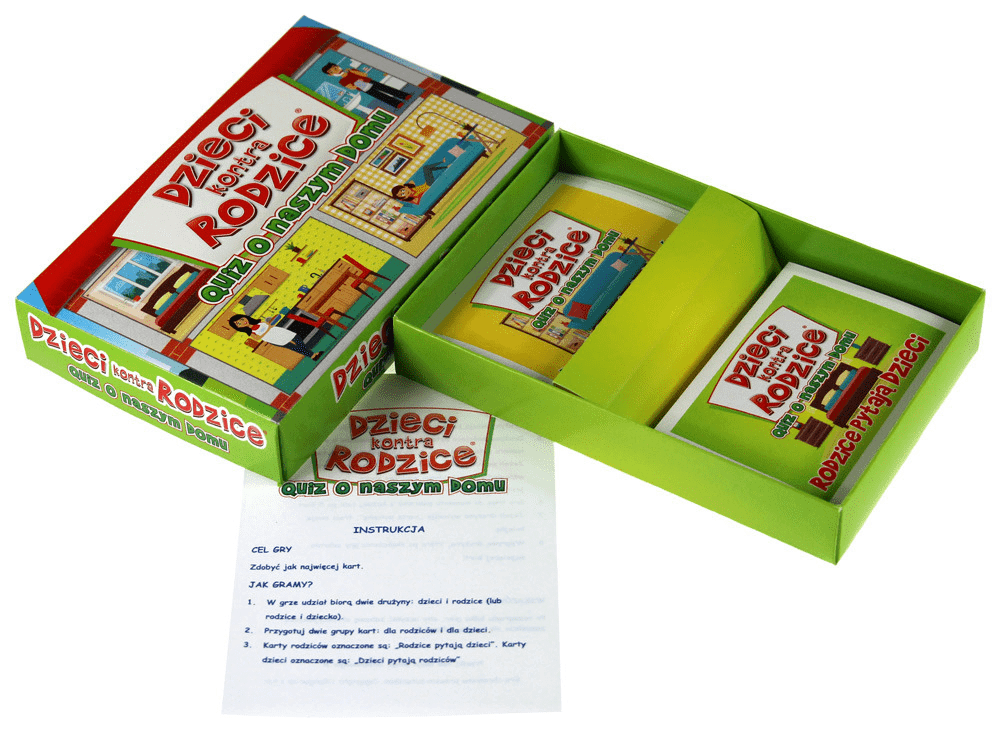 Czy znasz swój dom? Kto najdłużej bierze prysznic? Gdzie trzymamy skarpety? Czy mamy śrubokręt? Wesołe pytania dostarczą zabawy całej rodzinie oraz pozwolą lepiej poznać dzieciom swoje mieszkanie. W grze znajdziecie pytania przygotowane specjalnie dla dzieci i dla rodziców.