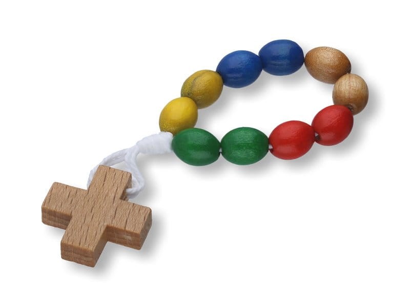 Ten wyjątkowy dziesiątek różańca został wykonany z kolorowych, drewnianych paciorków, które symbolizują pięć kontynentów świata. Każdy kolor przypomina o uniwersalnym charakterze modlitwy różańcowej, obejmującej wszystkich ludzi – niezależnie od miejsca i kultury.