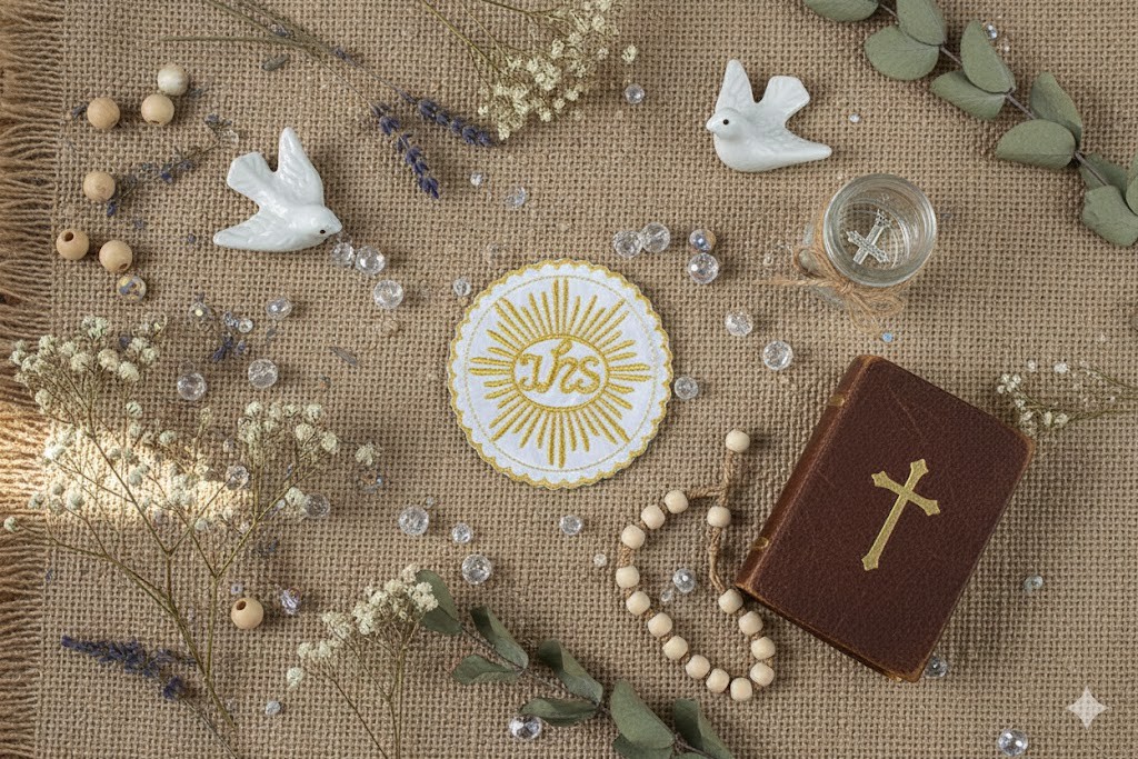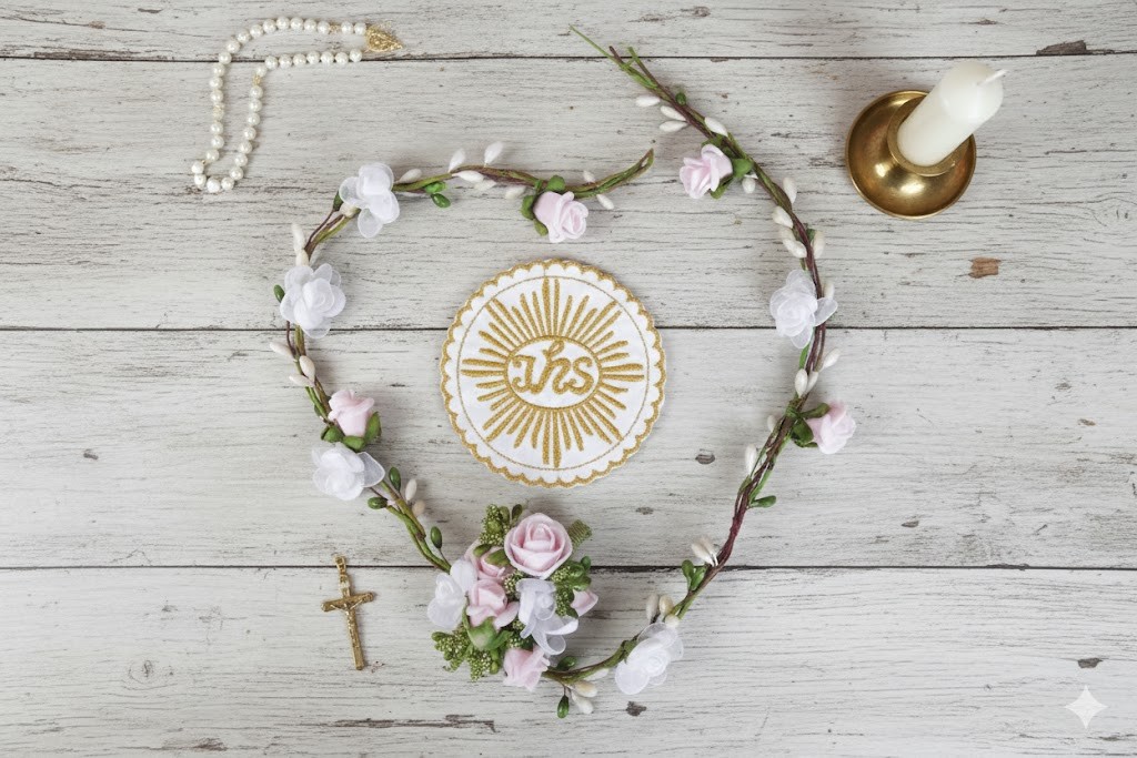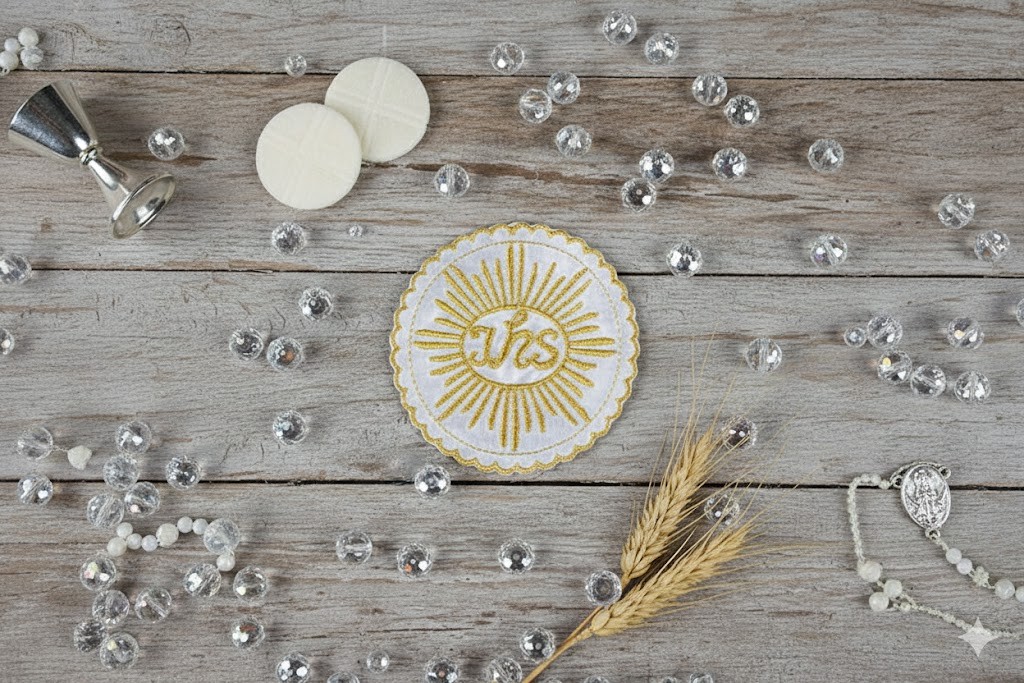 Emblemat pełni funkcję dekoracyjnego elementu stroju na Pierwszą Komunię Świętą. Może być naszyty na albę, pelerynkę lub inny element odzieży komunijnej.
