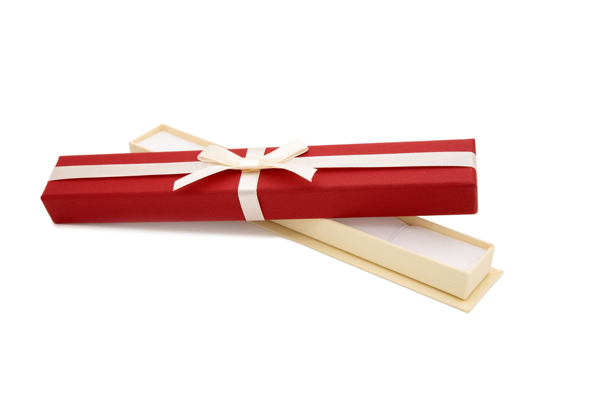 Etui tekturowe z kokardką podłużne jest eleganckim opakowaniem jubilerskim tekturowym wykonanym z najwyższej jakości papieru. Do opakowania pasują wyroby jubilerskie takie jak: bransoletki, łańcuszki, naszyjniki, różańce a nawet kolie i różańce Gąbka w środku opakowania jest specjalnie skonstruowana, żeby mogła bezpiecznie przetrzymywać wymienioną biżuterie – posiada dwie gumki które zapewniają, że przetrzymywana biżuteria nie przemieści się w środku opakowania.