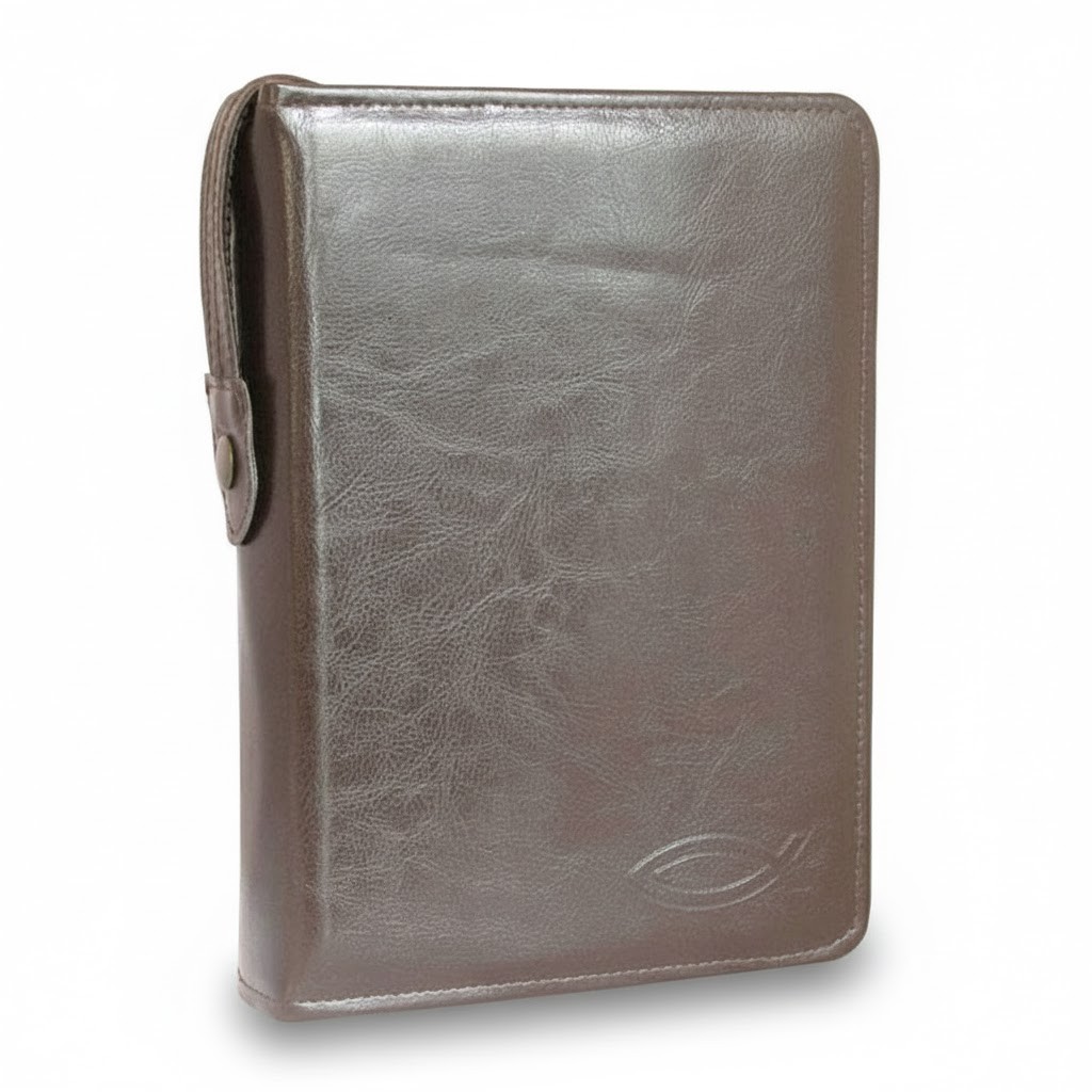 Ten model etui jest ściśle dedykowany do Biblii Tysiąclecia Pallottinum w dużym formacie 16 × 22 cm. Dzięki temu Pismo Święte idealnie układa się wewnątrz etui — bez luzów, zagnieceń czy naprężeń okładki. Brązowy kolor nadaje całości klasyczny, spokojny charakter, podkreślając powagę i ponadczasowość Słowa Bożego.