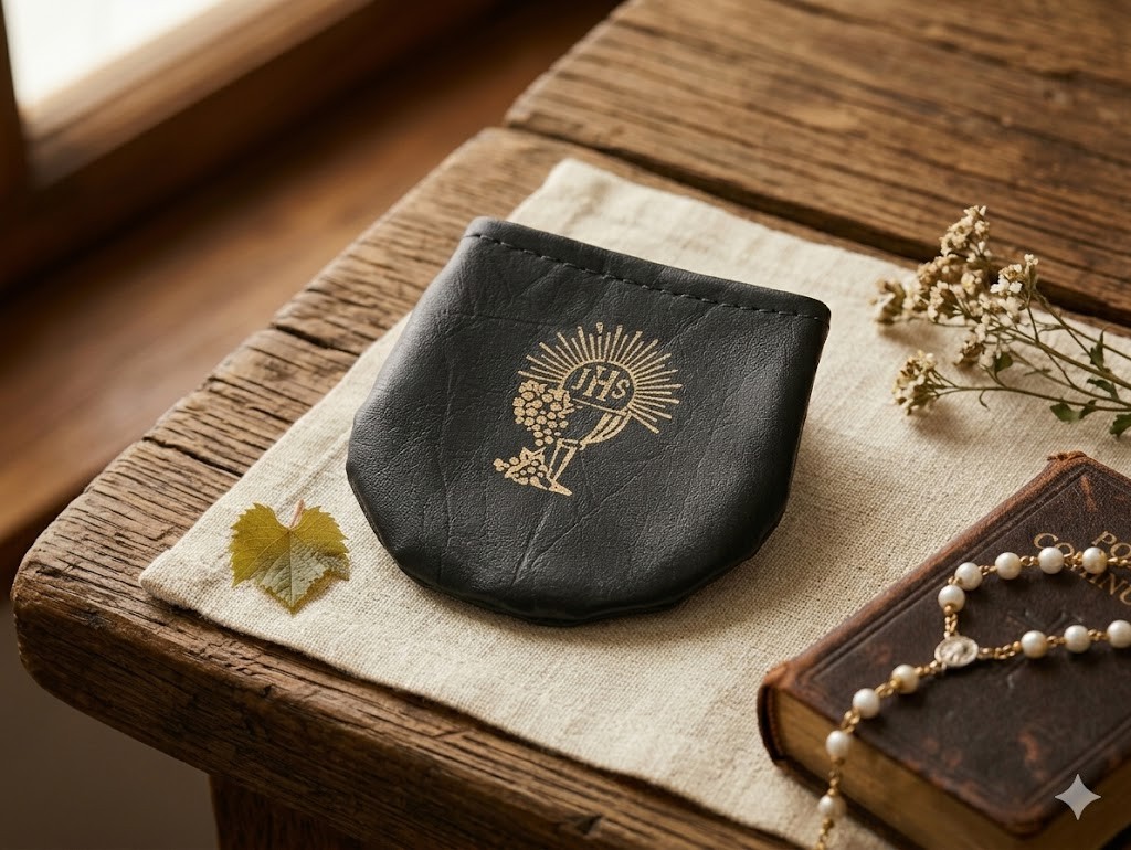 Eleganckie i praktyczne etui na różaniec, wykonane z imitacji skóry w klasycznym białym czarnym. Na froncie umieszczono ozdobny motyw „IHS” – symbol chrześcijańskiej wiary, który dodaje mu duchowego charakteru. Etui zamykane jest na wygodny rzep, co zapewnia szybki dostęp i jednocześnie bezpieczne przechowywanie różańca.