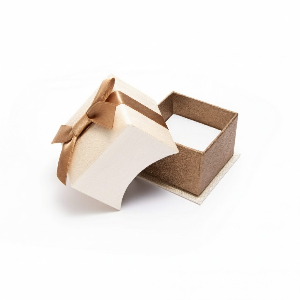 To eleganckie, kremowe etui tekturowe z dekoracyjną kokardką to gustowne opakowanie przeznaczone do biżuterii i drobnych upominków. Jego subtelny kolor oraz delikatna, złota wstążka sprawiają, że prezent zaprezentowany w takim pudełku nabiera wyjątkowego charakteru. Niewielki, poręczny format sprawia, że idealnie sprawdza się jako oprawa dla pierścionków, kolczyków, obrączek czy innych drobnych elementów jubilerskich.