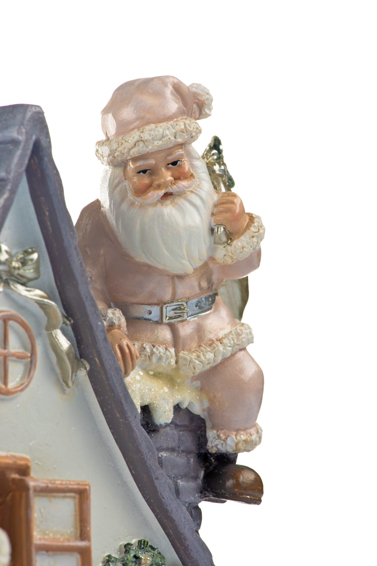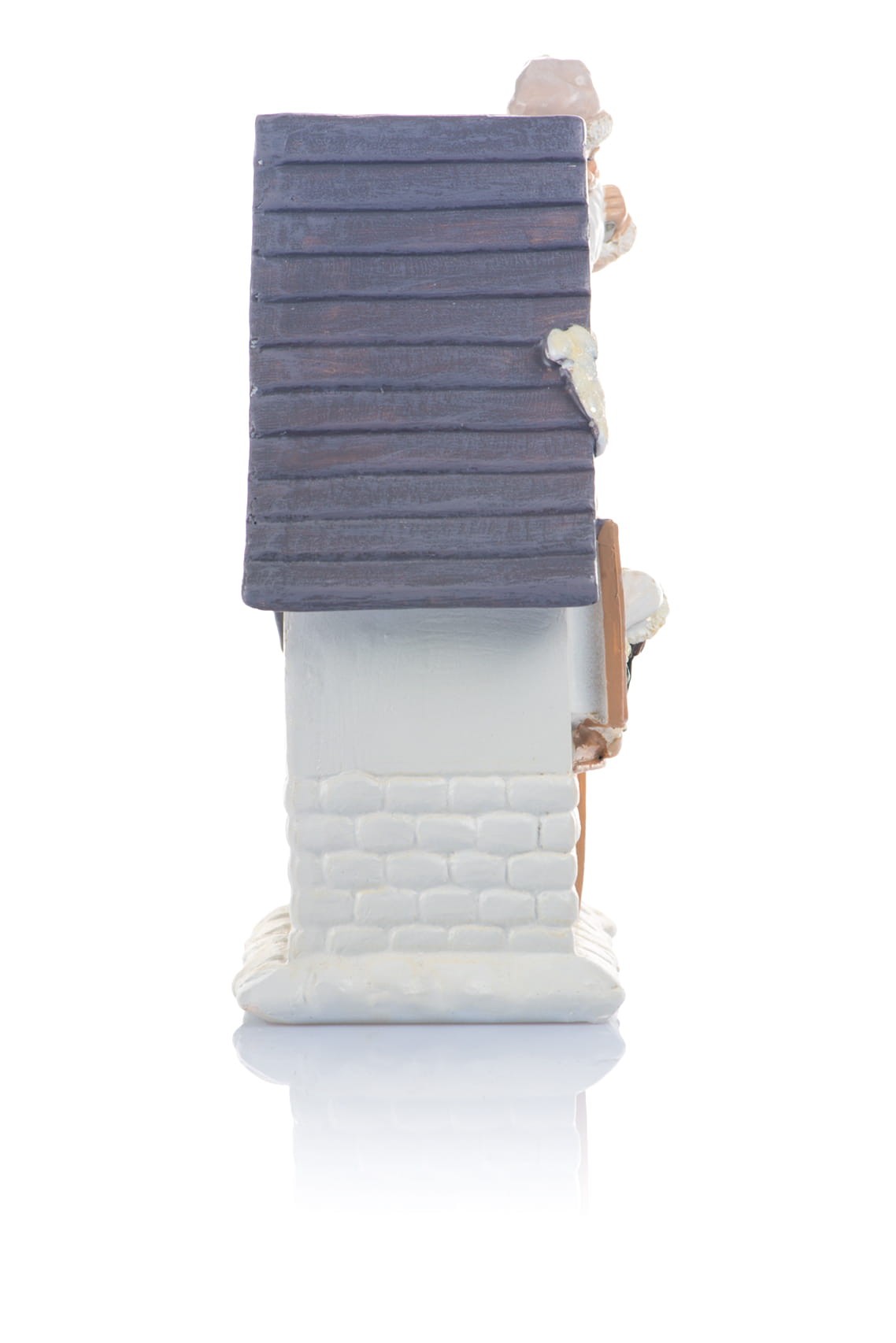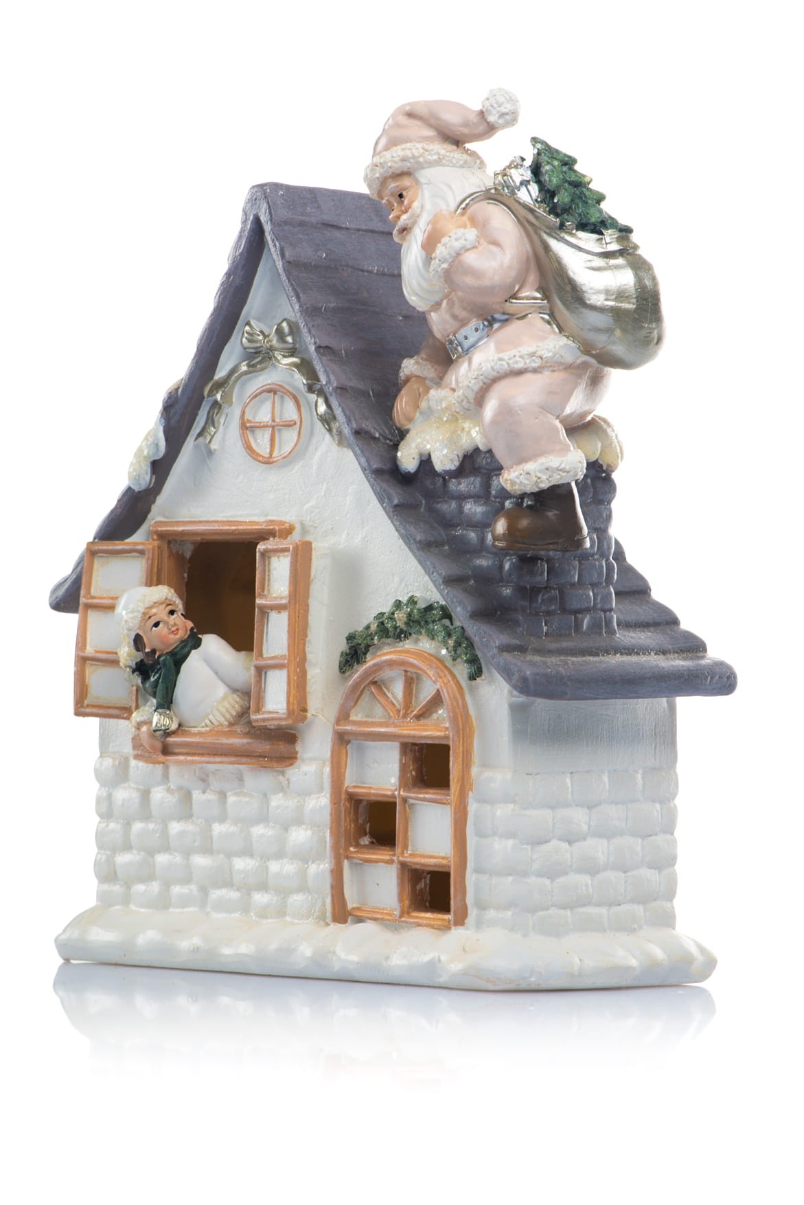 Domek wykonany z żywicy, podświetlany LED. Baterie w zestawie.