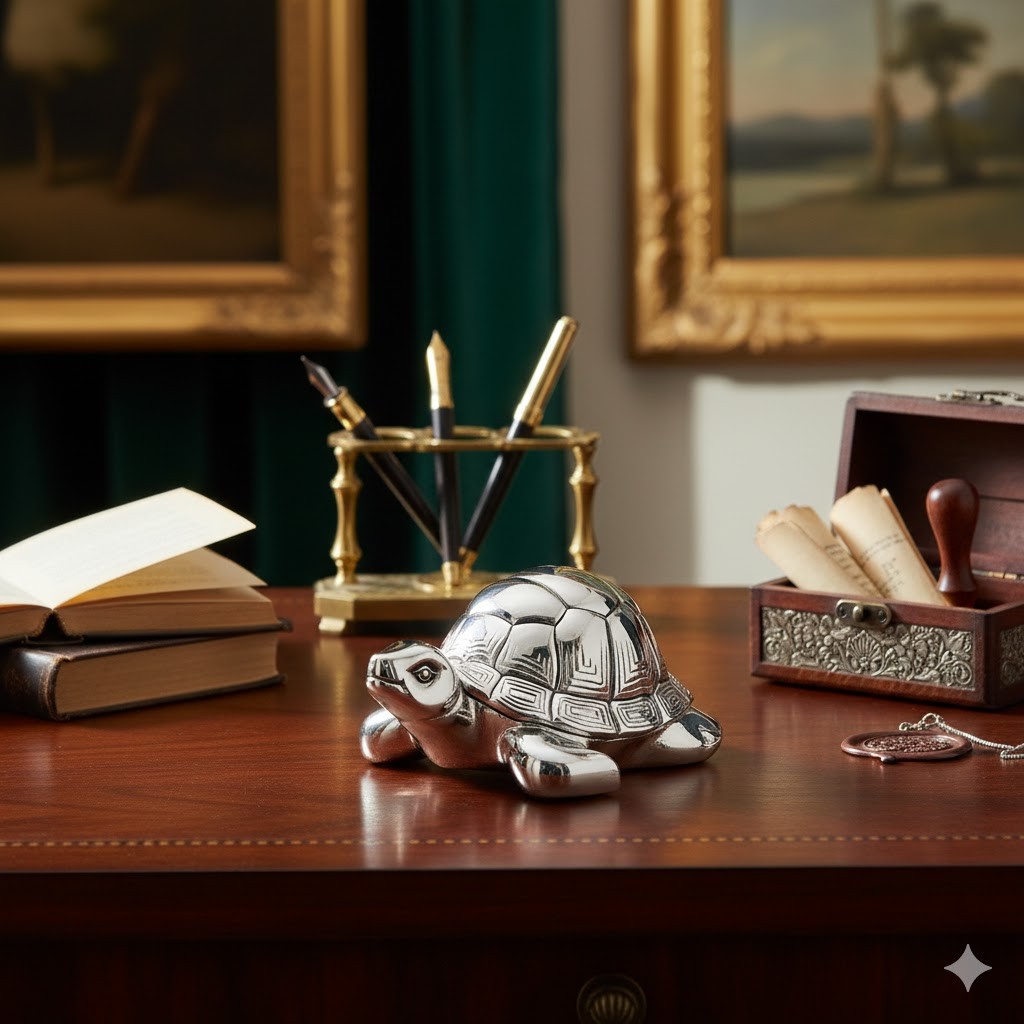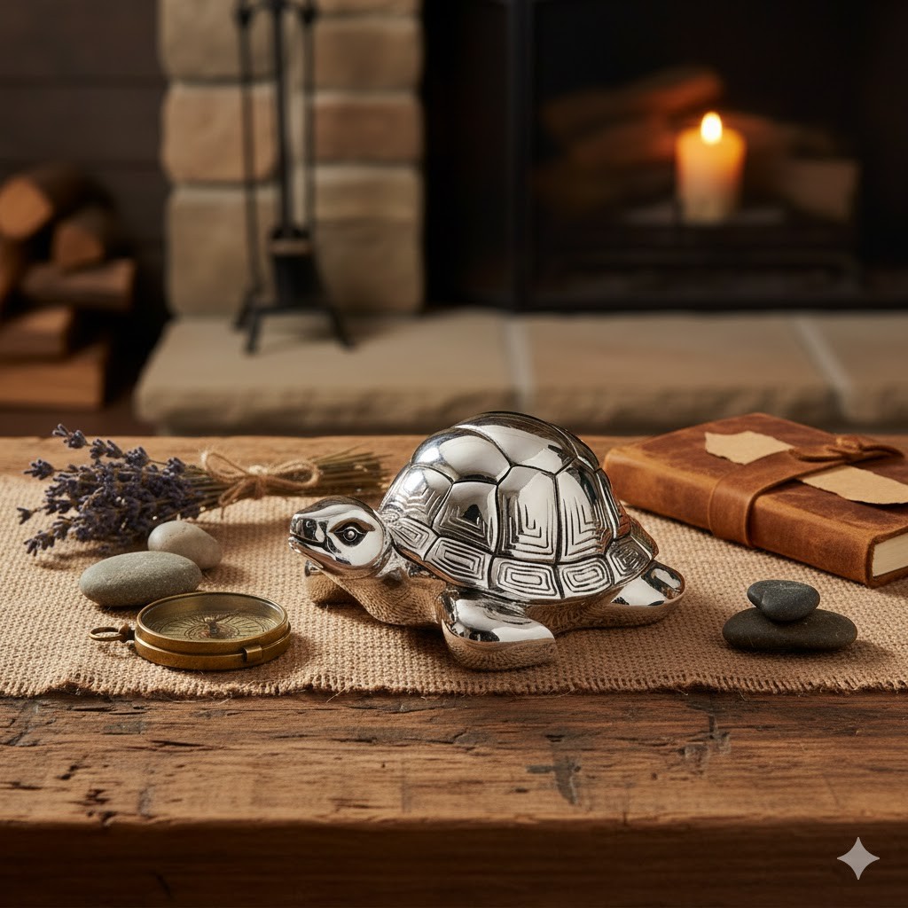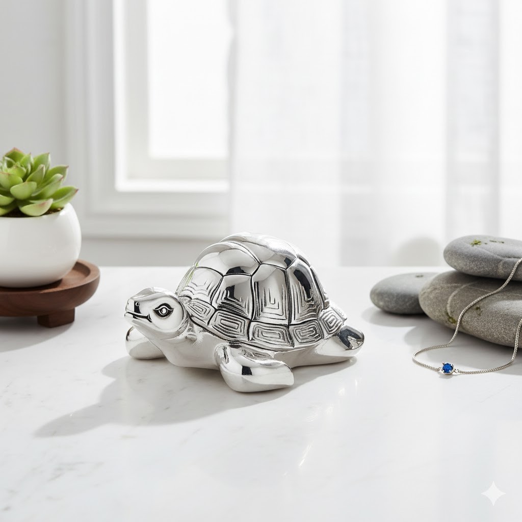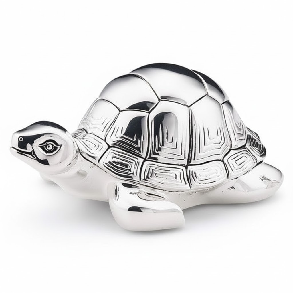 Figurka żółwia w kolorze srebra – symbol wytrwałości i ochrony