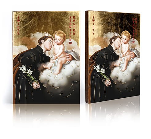 Ikona religijna przedstawia wizerunek Świętego Stanisława Kostki. Wszystkie ikony dostępne w naszej ofercie wykonane są z najwyższej jakości materiałów. Drewno wykorzystywane do produkcji ikon dobierane jest w niezwykle staranny sposób. Wizerunek naniesiony na ręcznie złoconą deskę. Produkt wspaniale sprawdzi się jako jedyny w swoim rodzaju upominek dla najbliższych.