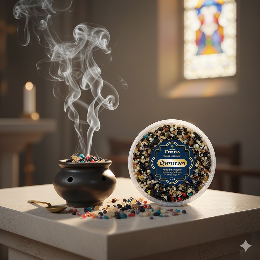 Wysokogatunkowe kadzidło żywiczne QUMRAN to oryginalna mieszanka inspirowana duchowością pierwszych wspólnot chrześcijańskich i miejscem, w którym odkryto zwoje znad Morza Martwego. Jego zapach łączy nuty żywicy, ziół pustynnych, mirry i cedru, tworząc aromat głęboki, mistyczny i skłaniający do kontemplacji.