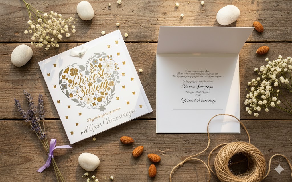 Karnet na Chrzest Święty od Ojca Chrzestnego – pamiątkowa kartka premium