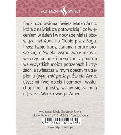 Karta Skuteczni Święci - Święta Anna