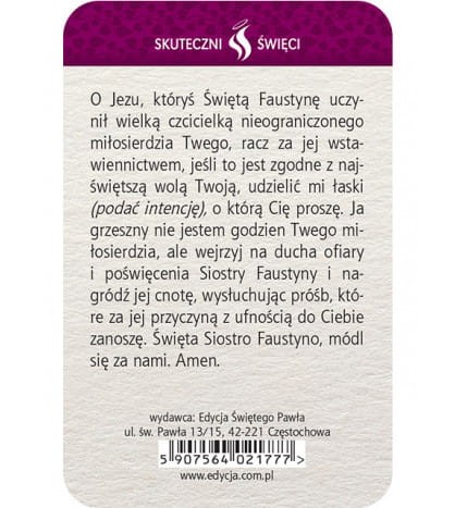 Karta Skuteczni Święci - Święta Faustyna