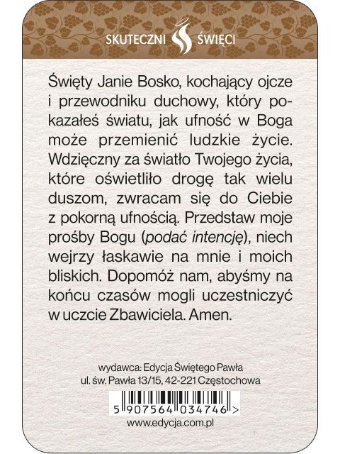 Karta Skuteczni Święci - Święty Jan Bosco