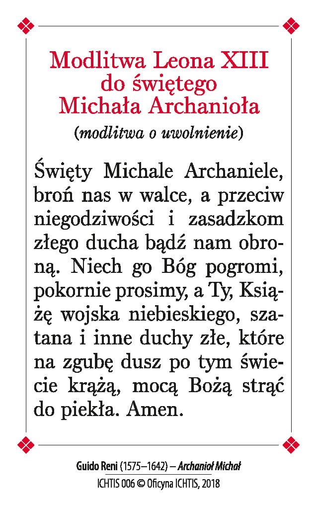 Na odwrocie modlitwa Leona XIII do świętego Michała Archanioła