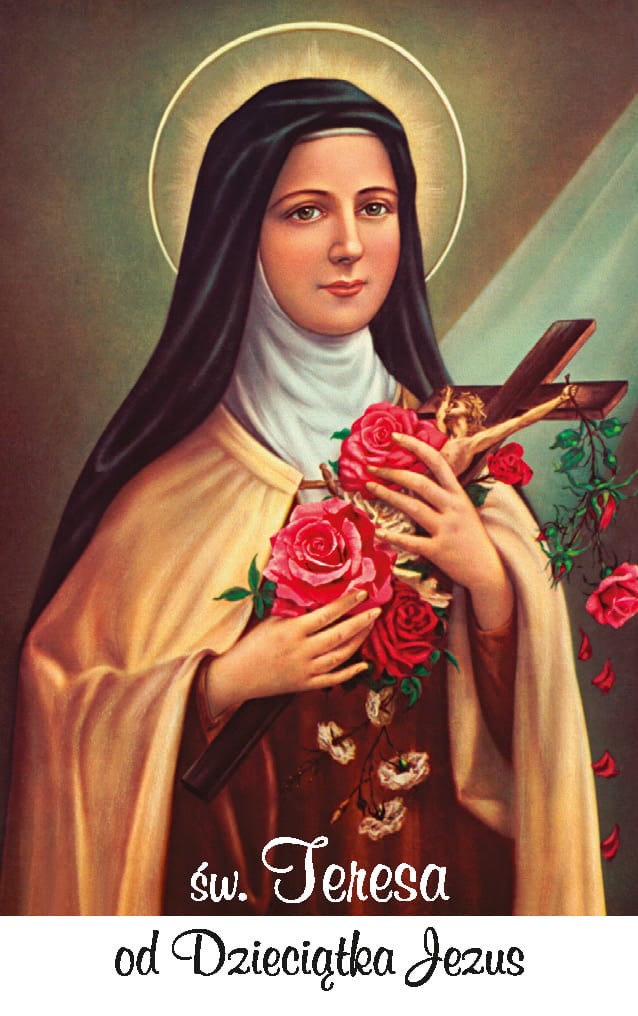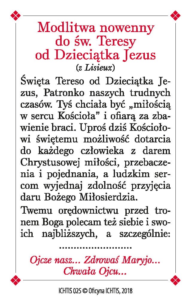 Na odwrocie modlitwa do św. Teresy od Dzieciątka Jezus (z Lisieux)