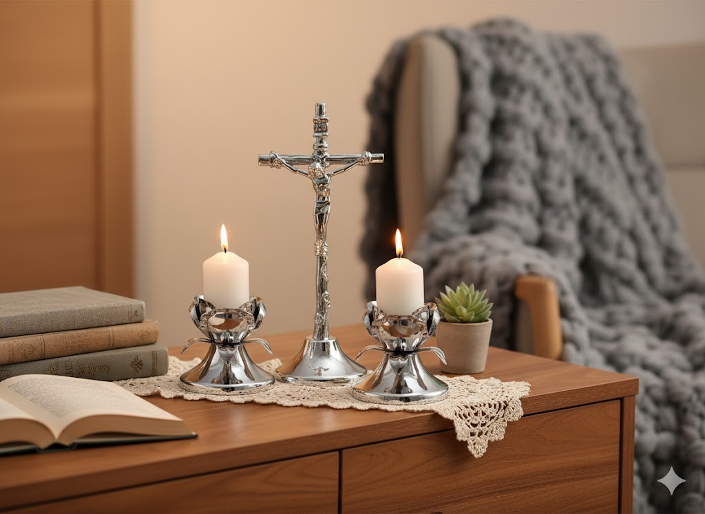 Zestaw przeznaczony do tradycyjnej wizyty duszpasterskiej, modlitwy w domu lub jako prezent dla osób pielęgnujących wartości duchowe. Sprawdzi się również jako symboliczny upominek z okazji świąt lub rocznic parafialnych.