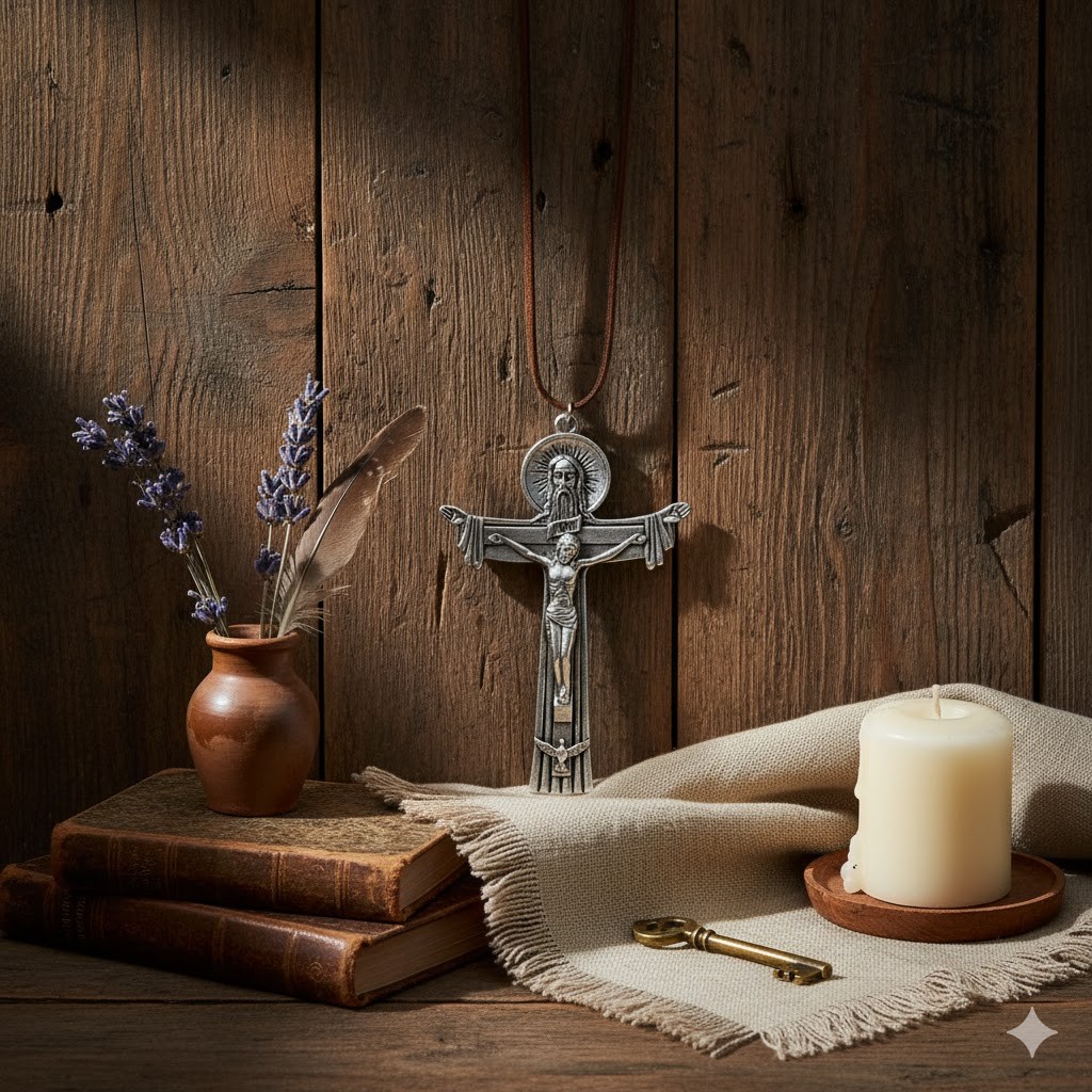 Dzięki dołączonemu rzemieniowi w jasnym odcieniu brązu krzyż można nosić jako naszyjnik — blisko serca, jako codzienny znak wiary — lub zawiesić w miejscu modlitwy czy na ścianie w domu.