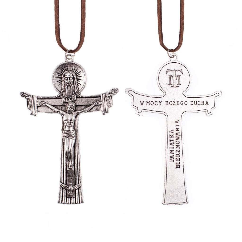Krzyż „Trójca Święta” – Pamiątka Bierzmowania z rzemieniem (11 cm)