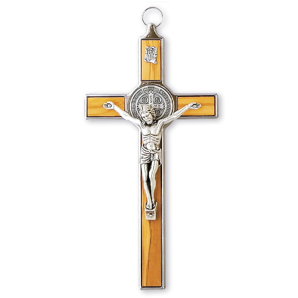 Krzyż Benedyktyński – 20 cm, metal inkrustowany drewnem oliwnym