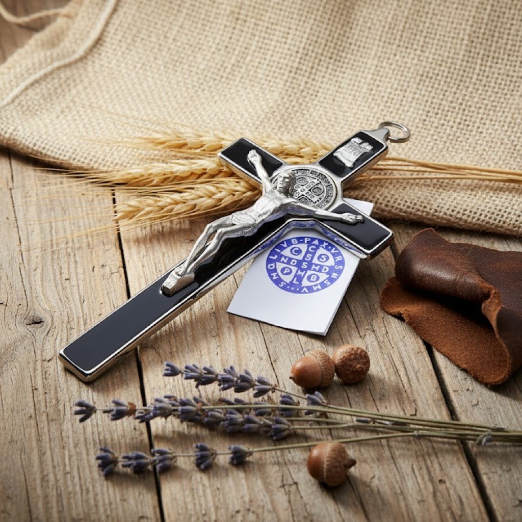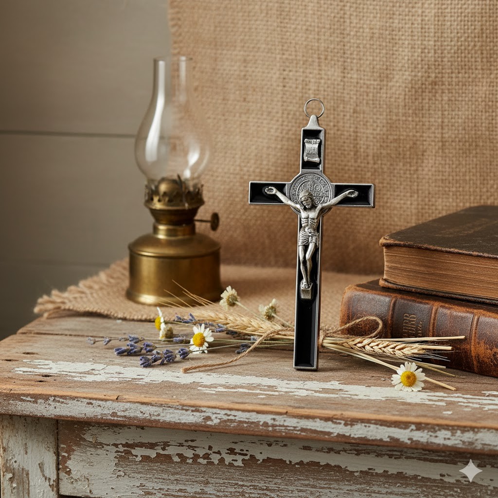 Krzyż benedyktyński to połączenie znaku krzyża Chrystusa z medalem św. Benedykta z Nursji, który od wieków reprezentuje ochronę duchową, wytrwałość i oddanie. Czarny kolor dodaje mu wymiaru ciszy, kontemplacji i głębi — może przypominać o Bożej obecności także w chwilach trudnych i wymagających. Umieszczony w domu, staje się codziennym znakiem nadziei, modlitwy i spokoju.