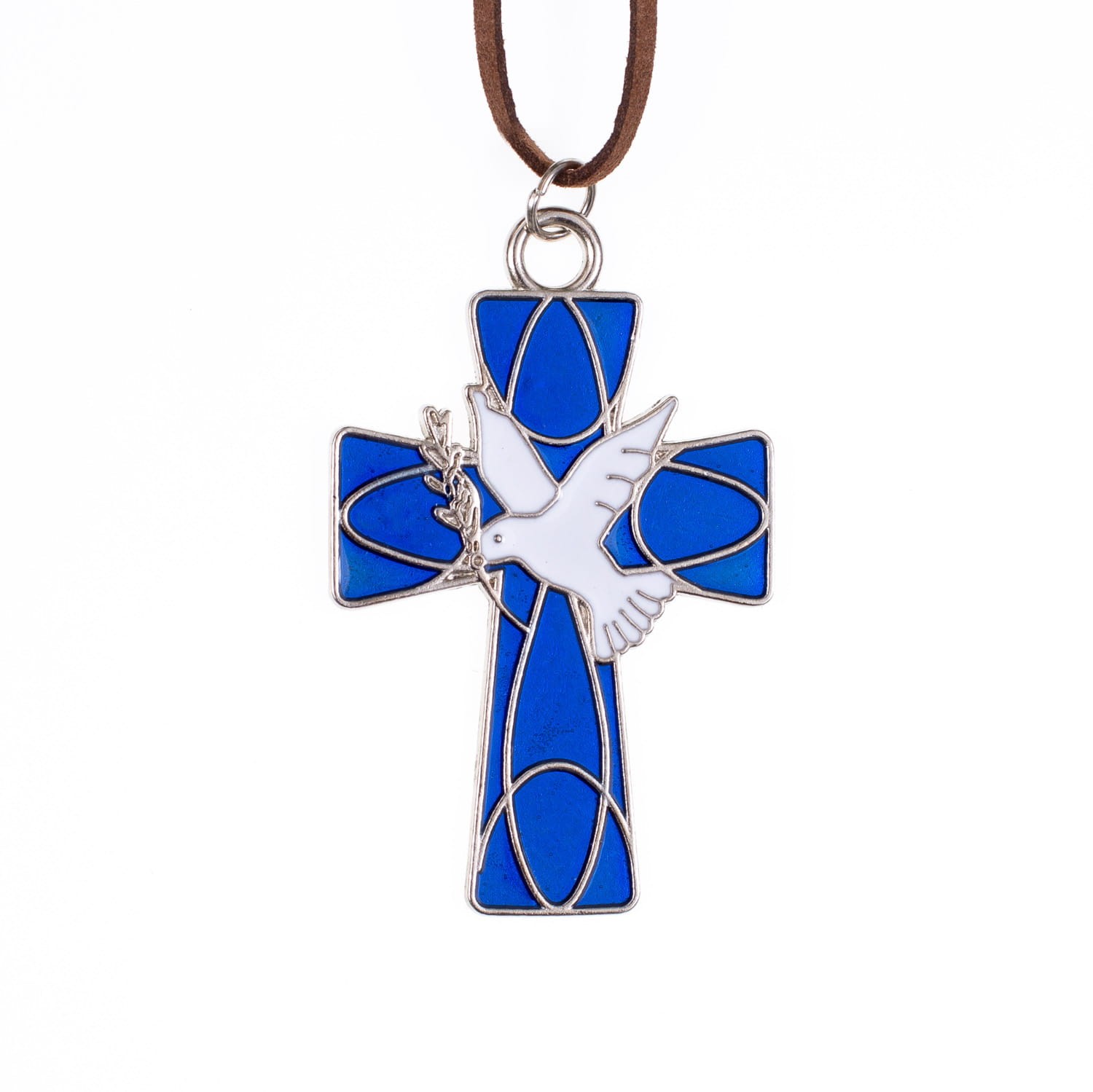 Krzyż Duch Święty z rzemykiem - 5,5cm (Blue)