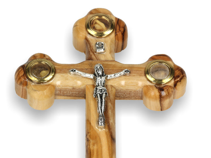 Krzyż Jerozolimski z kapsułkami wykonany z drzewa oliwnego