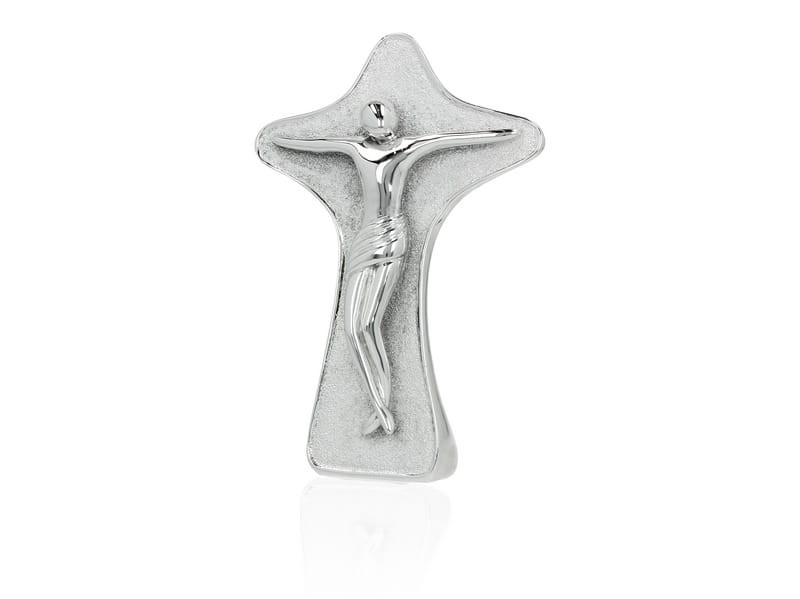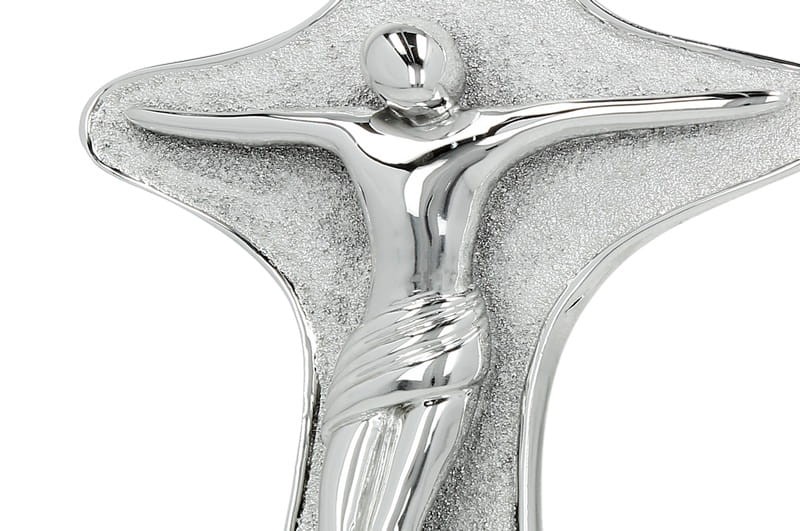 Stylowy krzyż stojący laminowany srebrem o próbie 999,95 do postawienia.