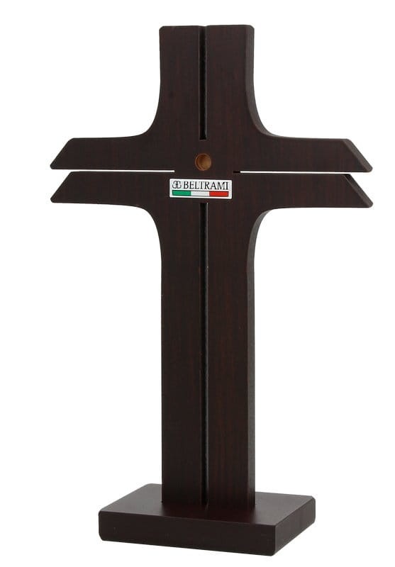 Krzyż stojący, po zdjęciu podstawki możliwość zawieszenia na ścianie (posiada otwór)