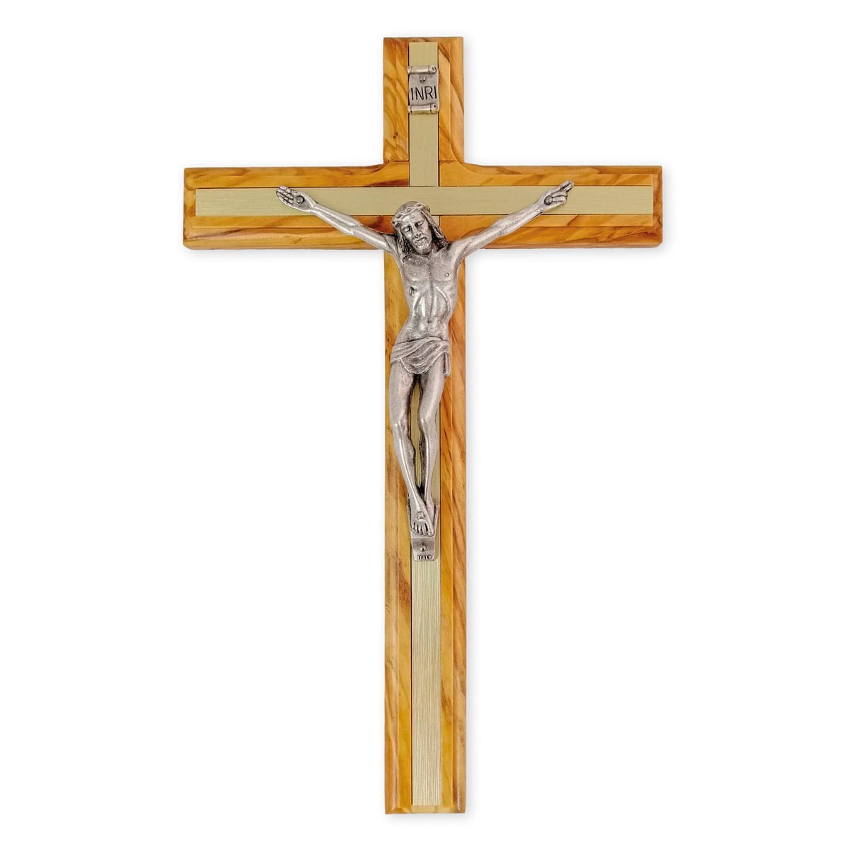 Krzyż z drzewa oliwnego inkrustowany metalem w kolorze złotym [rozmiar do wyboru]