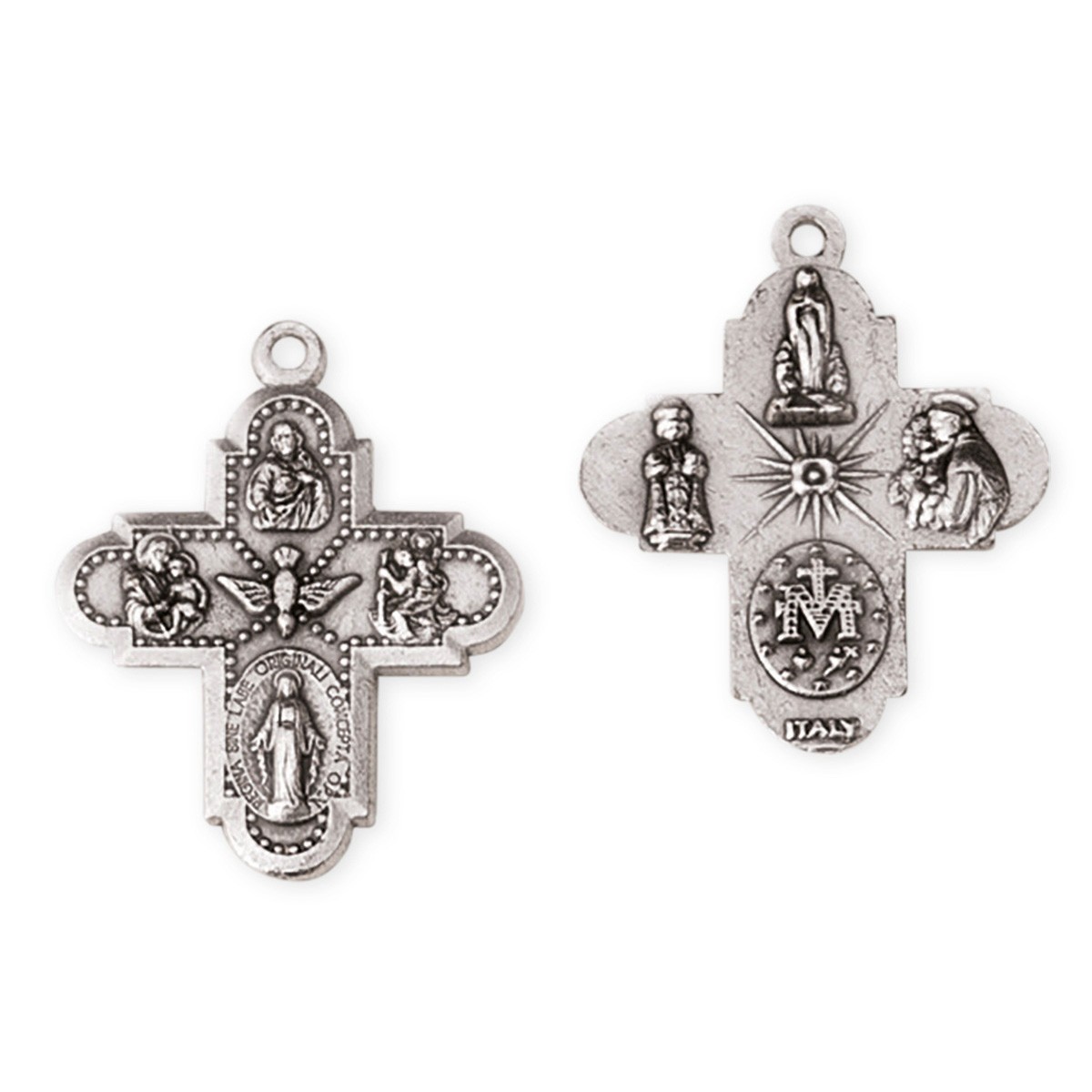 Na awersie na ramionach krzyżyka wytłoczone wizerunki Matki Bożej Niepokalanej, Świętego Józefa, Najświętszego Serca Jezusa,Świętego Krzysztofa i symbol Ducha Świętego.