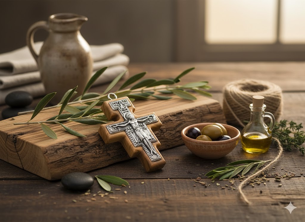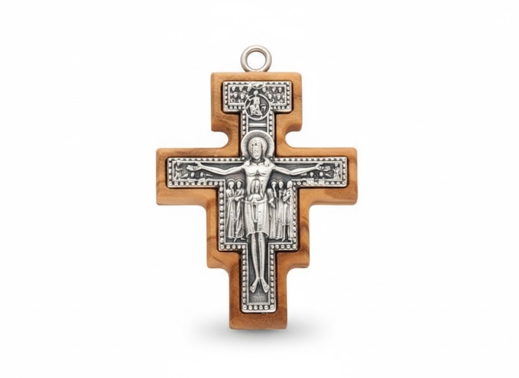 Krzyżyk San Damiano z drzewa oliwnego to niezwykły symbol wiary, nawiązujący do chwili, w której św. Franciszek z Asyżu usłyszał słowa Chrystusa: „Idź i odbuduj mój Kościół”. Ten krzyż stał się znakiem przemiany, duchowej odnowy i zaufania Bogu — dlatego jest tak chętnie wybierany jako codzienny znak wiary i modlitwy.